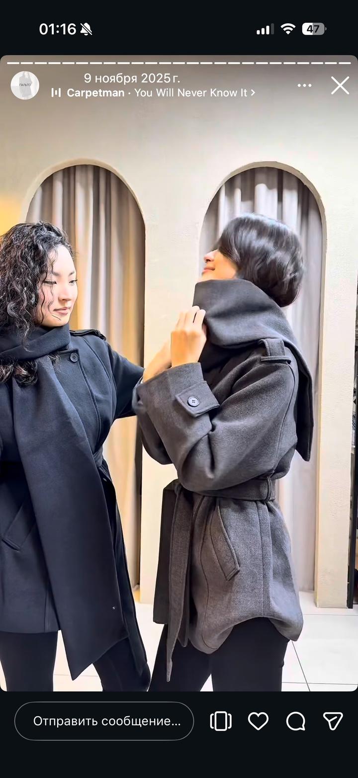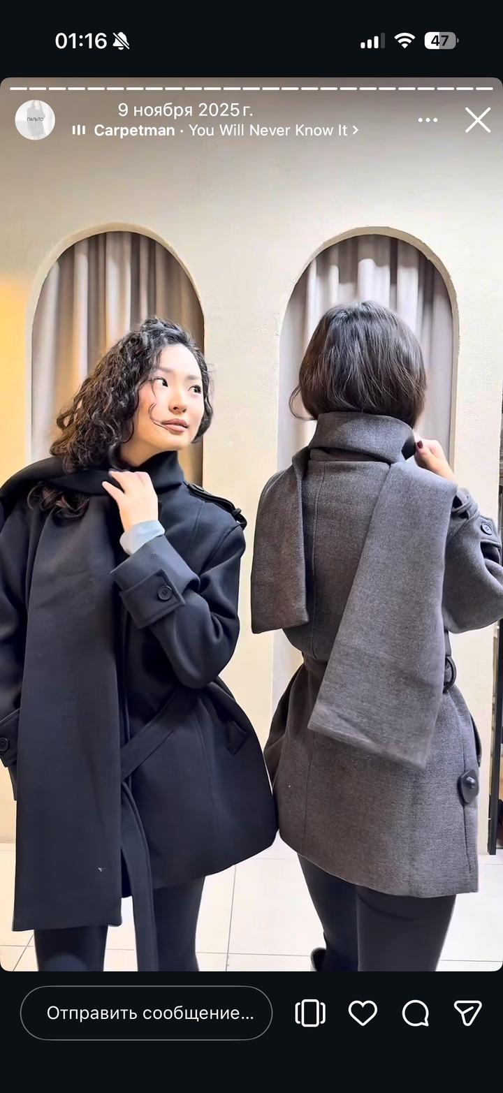 Серое пальто с воротником в виде шарфа, размер S/M, надевала 1 раз. Оказался брак: с одной стороны карман не глубокий, заметила после снятия бирок. Покупала за 34000 в agasaz Артикул: 434598