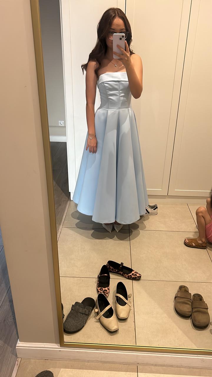 Очень красивое платье с корсетным верхом — классно подчёркивает талию и держит грудь без бретелек. Юбка пышная, миди длины, покупала на выпускной. Одевалось 1 раз. Размер Xs-S Артикул: 434855