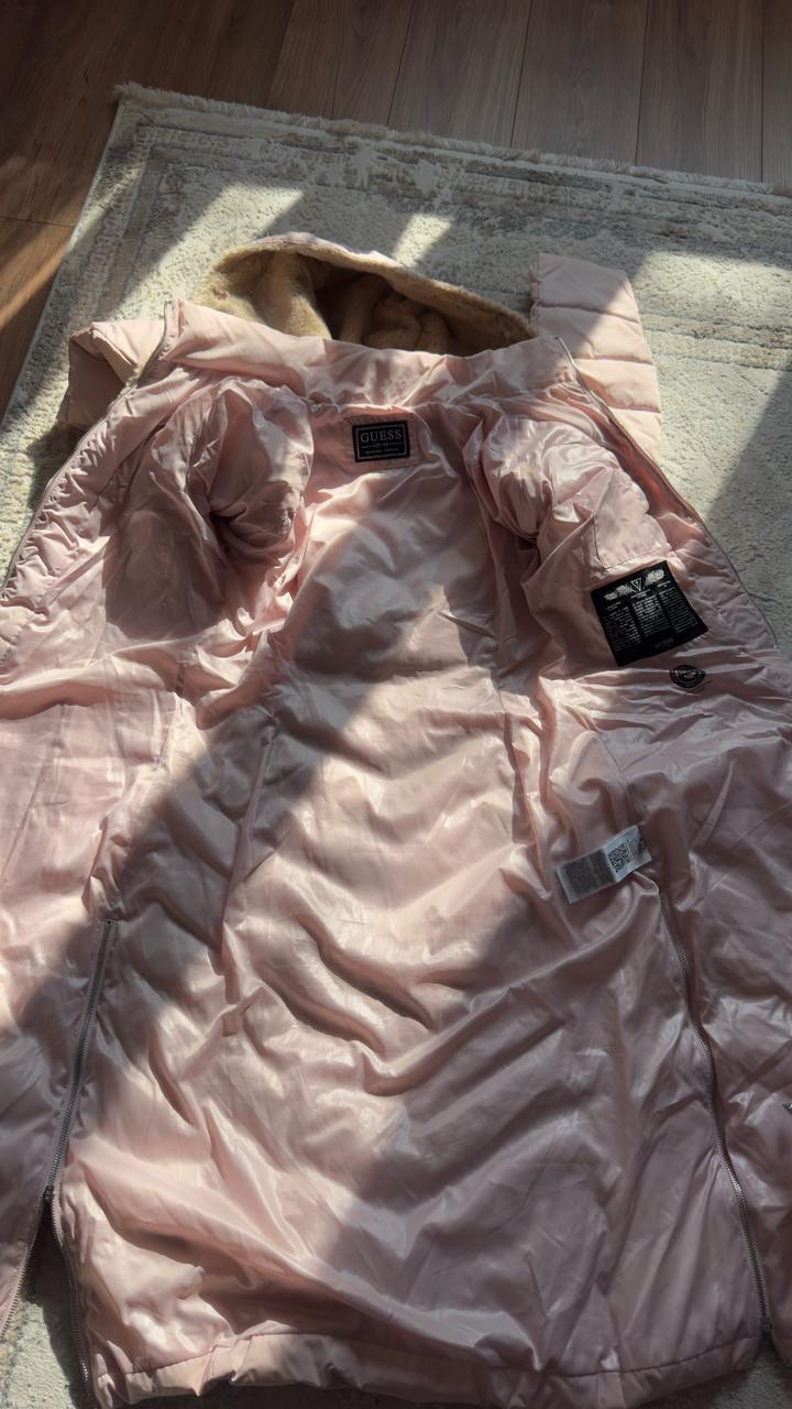 Продаю куртку Guess, размер M 🤍 Нежно-розовый цвет — очень красиво смотрится вживую. Носила всего 2–3 раза, состояние отличное. Продаю, потому что при моём росте 160 см она мне немного длинная. Покупала за 200 000 ₸, продаю за 40 000 ₸. Артикул: 435643