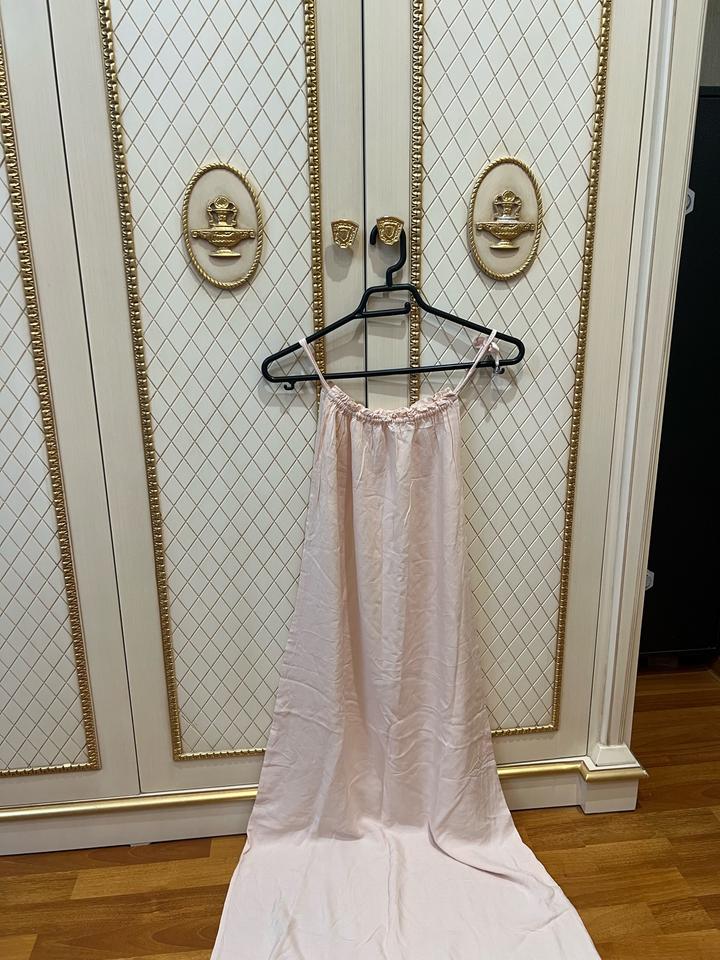 Нежно-розовое(персиковое ) платье-сарафан из премиальной итальянской ткани . Лёгкое, струящееся, на тонких бретелях. Минималистичное и очень женственное. One size - XS.S.M. Артикул: 435702