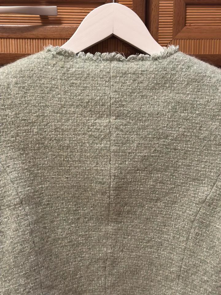 💚Роскошный жакет из итальянской шерсти Mango - лимитированная серия. Размер указан М, но на самом деле идеально сядет на XS-S. Если вы М, как я - жакет на вас не застегнется( Надевала один раз, один раз был в химчистке. Эта коллекция была представлена заграницей, там приобрела. У него потрясающая фурнитура, и очень красивый премиальный подклад. Его цвет нереальный, фисташковый💔 Успей приобрести к весне и сияй🌸 Без этикетки Артикул: 435740