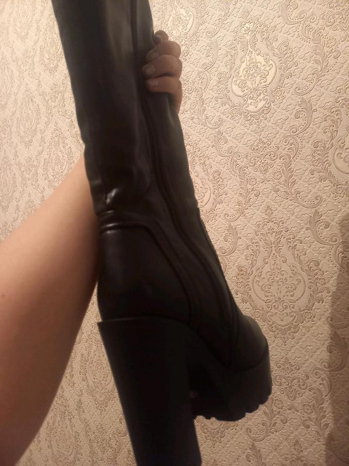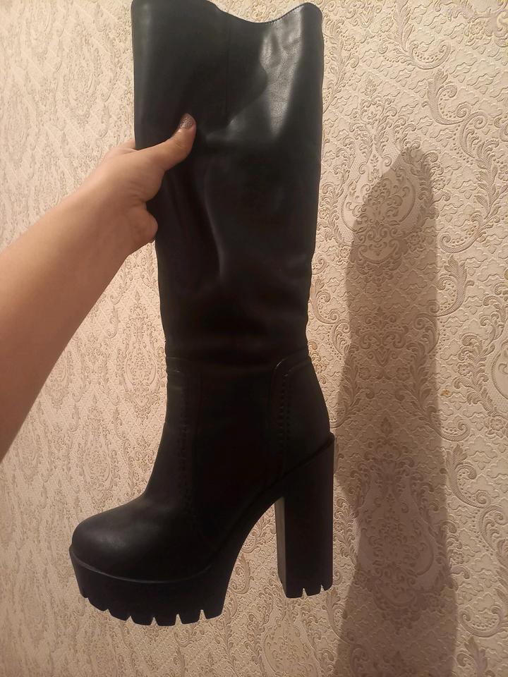 Сапоги с платформой. Они подойдут для 35-36 размера. На 1 сапоге есть небольшие потертости, но их особо не видно Артикул: 436485
