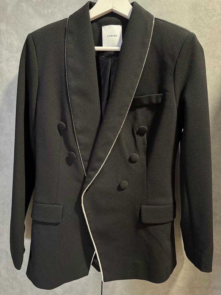 Праздничный жакет пиджак, цвет чёрный, стразы камни все на месте, производство Италия, размер S, на рост от 160 см, бренд Lumina, застегивается на любую сторону Артикул: 436886