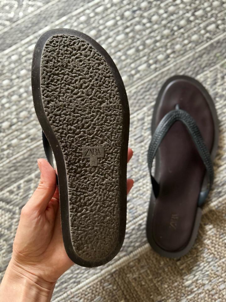 Удобные бегать туда сюда. На пляж. В хорошем состоянии. Нигде не отклеивается и тд. покупала в нашей Zara Артикул: 437386