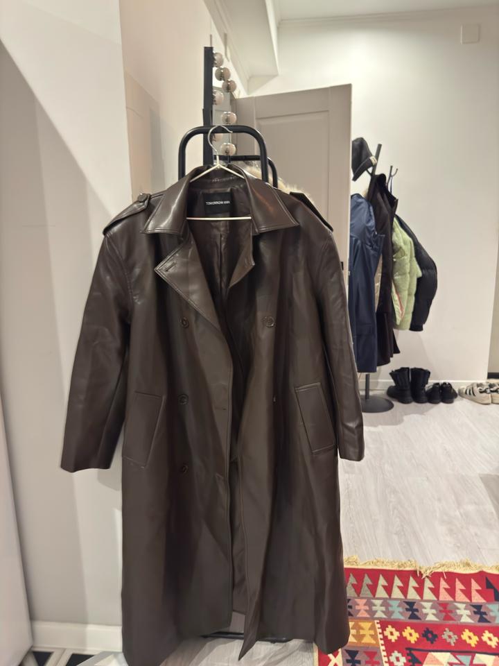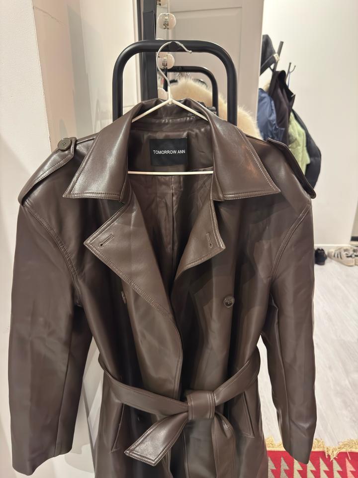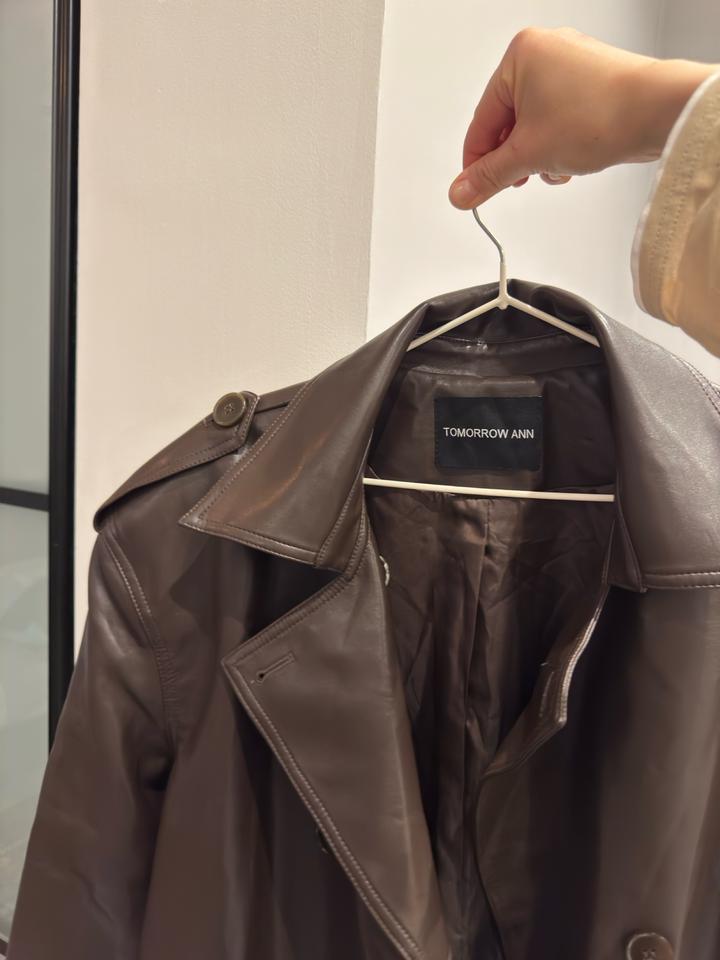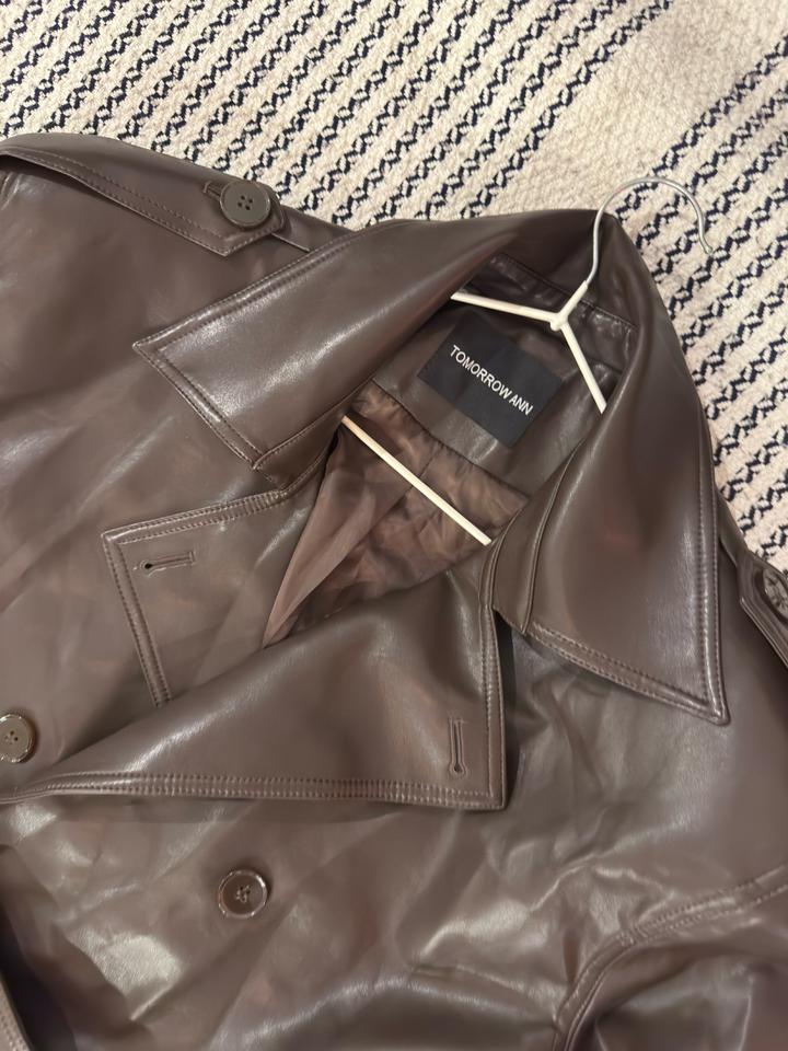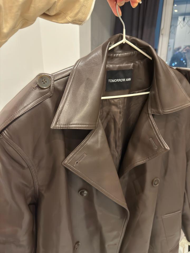 Тренч кожаный цвет шоколад оверсайз с утрированными плечамиS/M