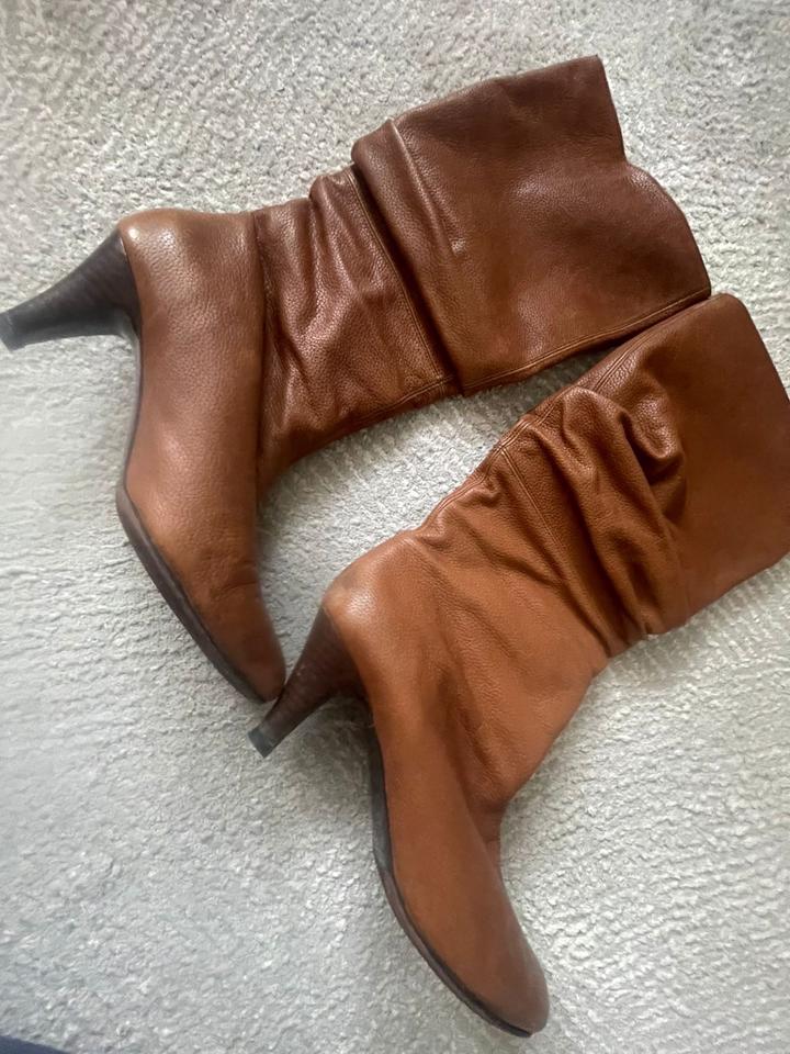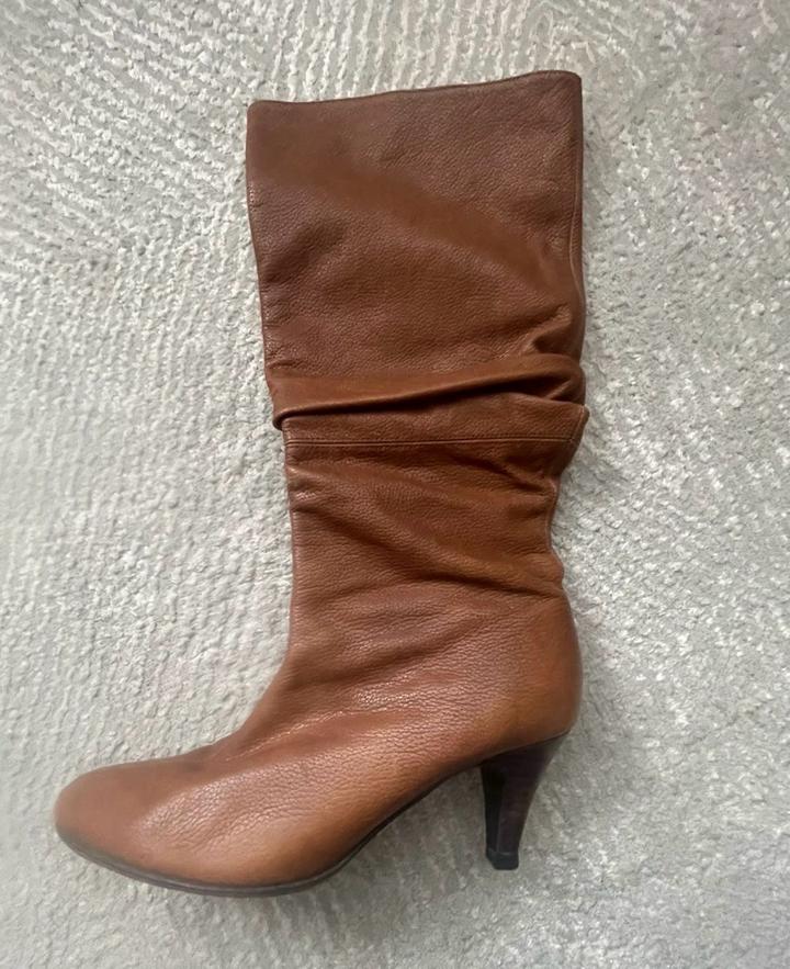 Винтажные кожаные сапоги ZARA. Размер 3+7### ### ## ##м сапоге сзади имеется небольшая потертость. Артикул: 437844