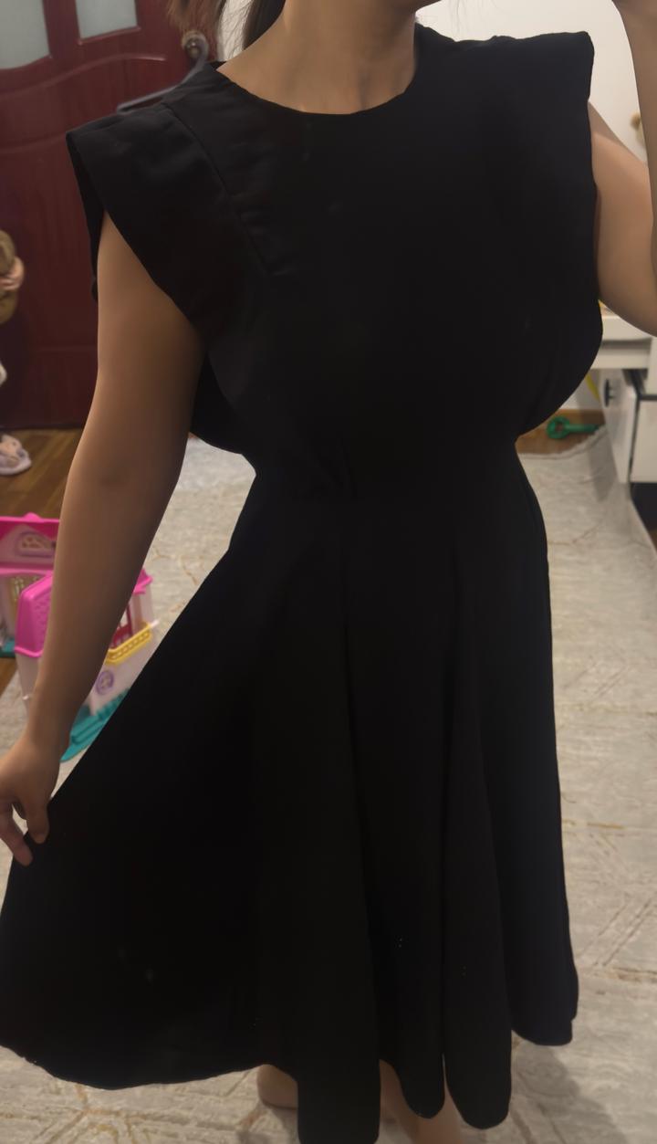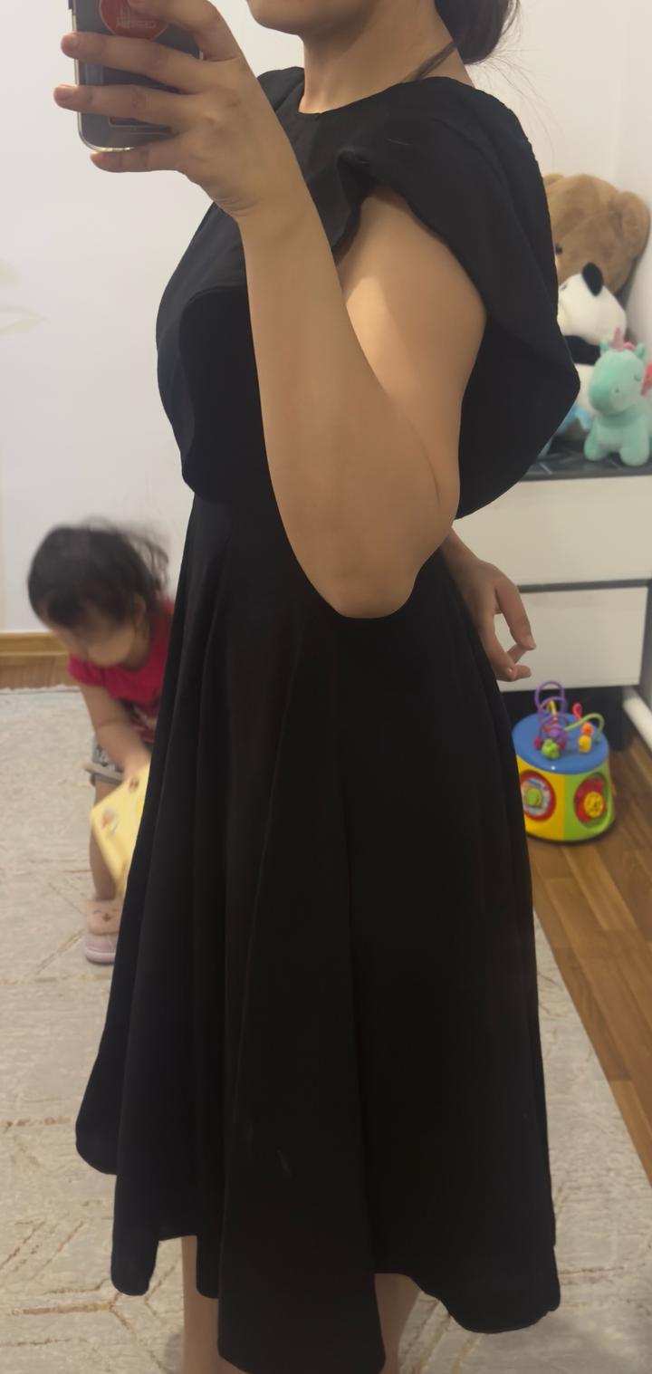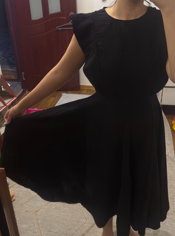 Красивое черное платье без лишних деталей. Очень удобное. Длина хорошая. Доп фото скину, т к мне малы не смогла корректно сфоткать Артикул: 437866