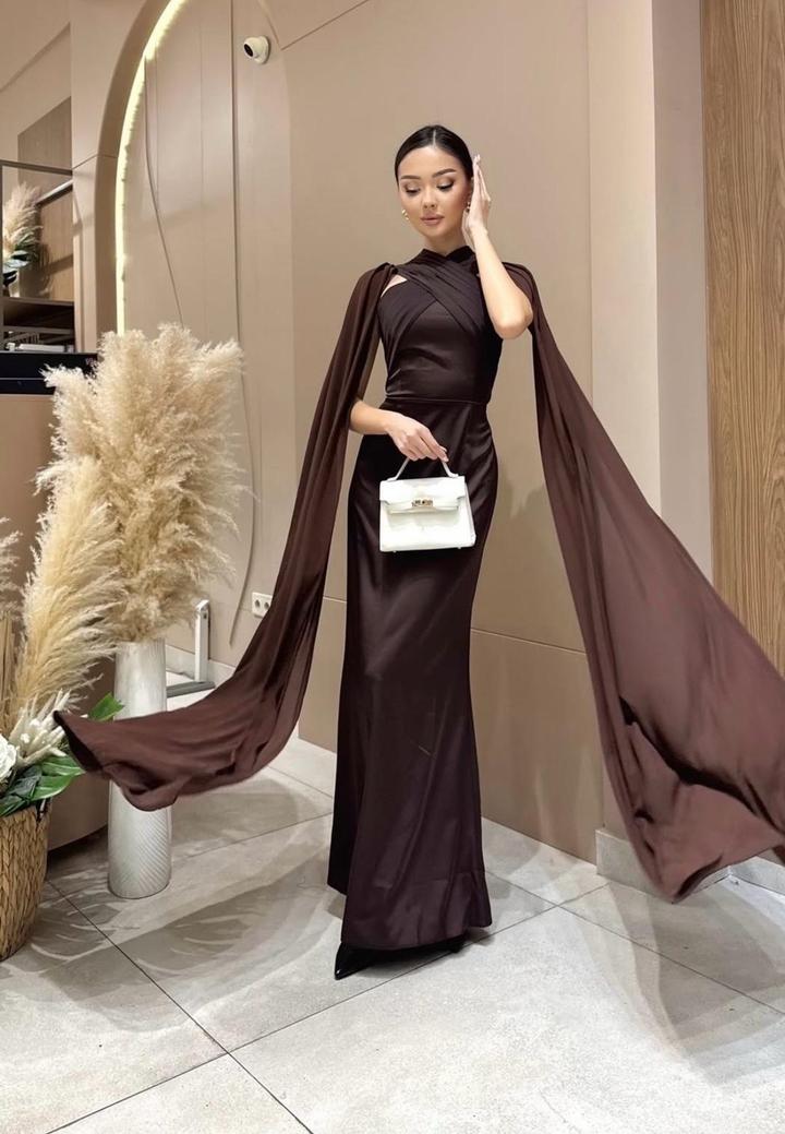 Коричневое атласное платье. Надевала один раз, в идеально состоянии 🙌🏻 Артикул: 437935