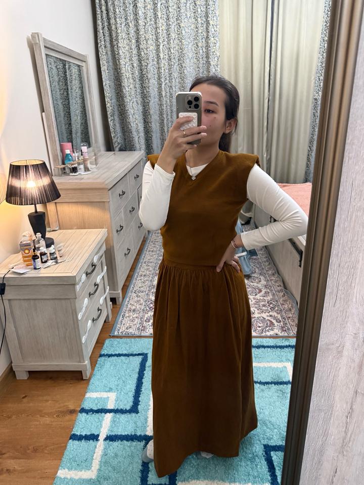 Носите вместе или по отдельности. Подходит и на работу, и на прогулки. Актуальный цвет, удобный материал, идеальная посадка. Он гортичного цвета. Артикул: 437986