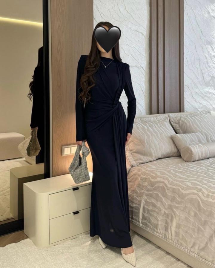 Длинное, с драпировкой на талии и длинными рукавами, идеально подчеркивает фигуру. Мягкий материал, комфортный в носке. Идеально для особых случаев или стильных выходов в город! Артикул: 438011