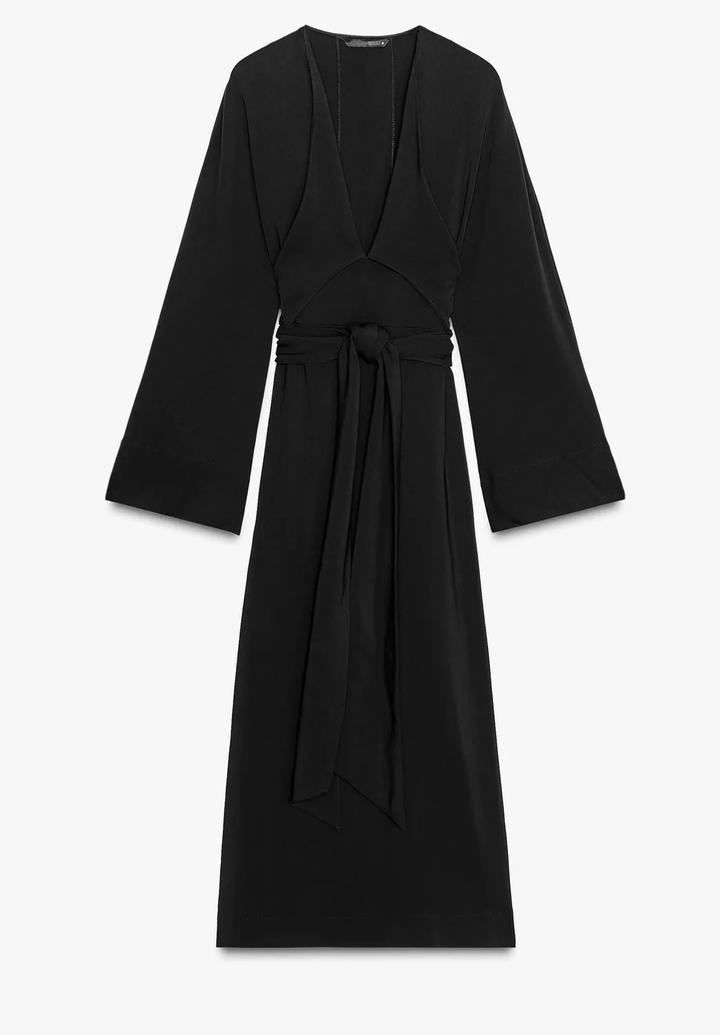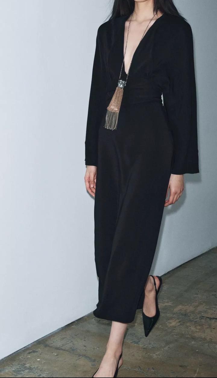 Новое платье миди от Zara🖤 завязки можно завязывать разными способами 🖤V- образный вырез, длинные рукава 🖤 в объявлениях есть точно такое платье в цвете экрю🤍 Артикул: 438107