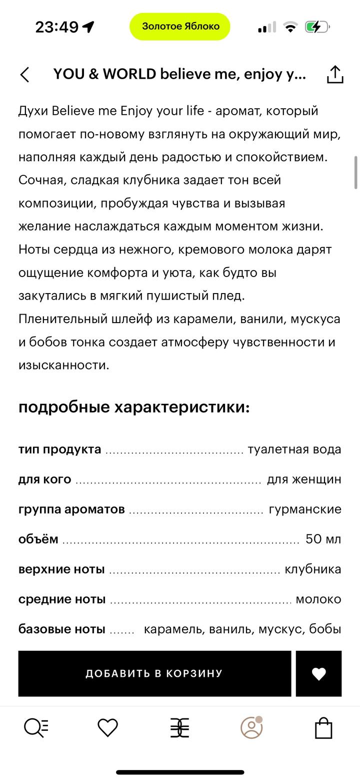 Парфюм из Золотого яблока, U&W 50 мл. 09.02.26 года открыли упаковку, но не пользовались, новый. Полное описание в галерее фото. Ваниль, карамель, клубника. Артикул: 438112