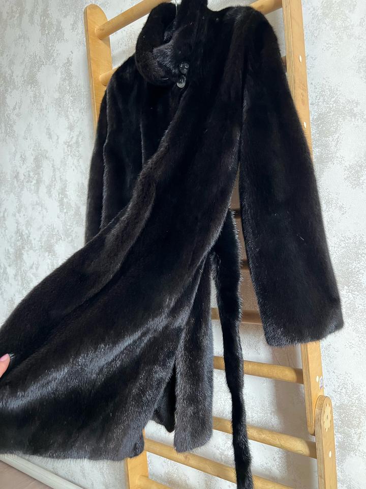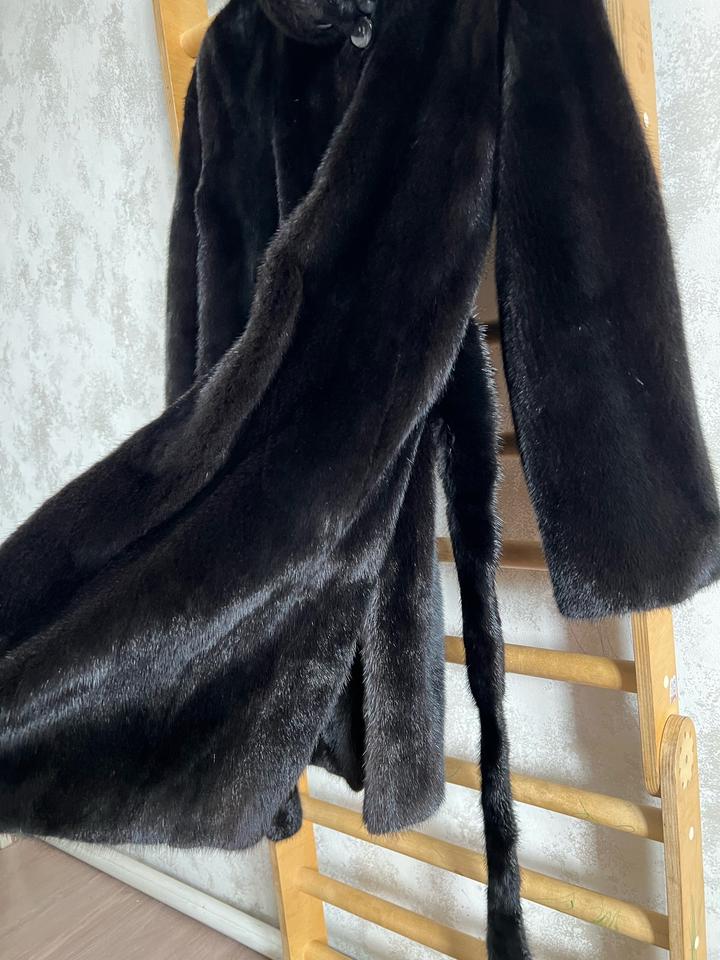 Норковая Греческая чёрная шуба, хорошего качества. Надевалась около 10 раз. Размер 44, подойдёт на M. Передние крючки закрываются не полностью. Артикул: 438735