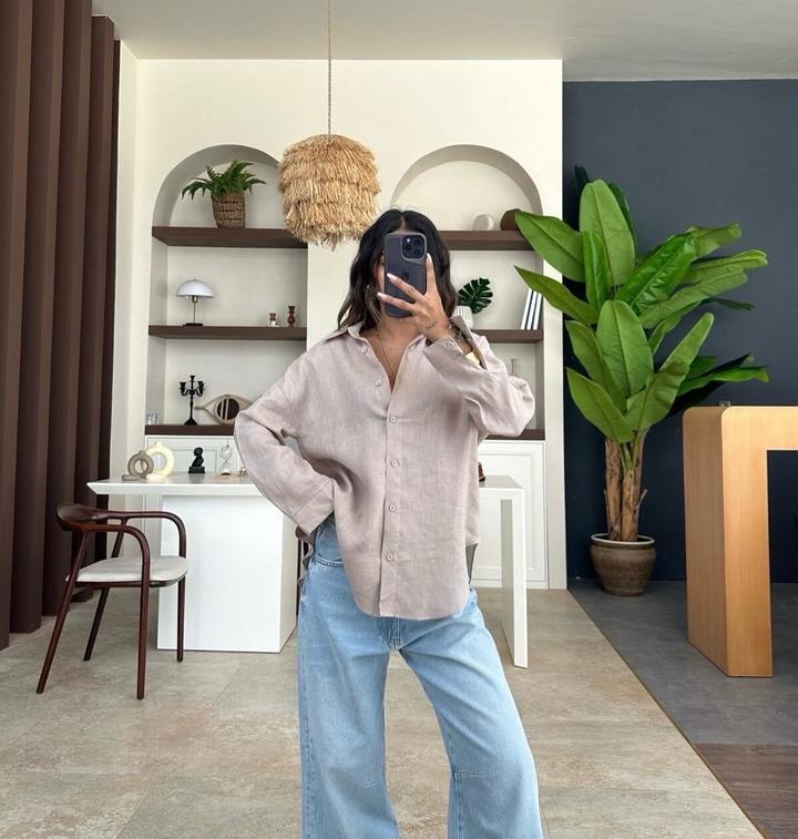 Рубашка лён Massimo DUTTI остался в цвете бежS/M