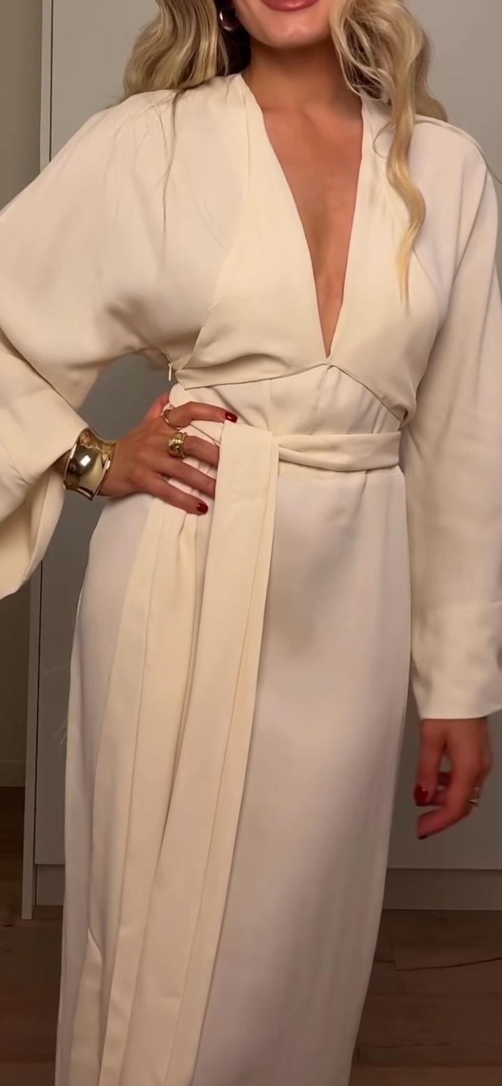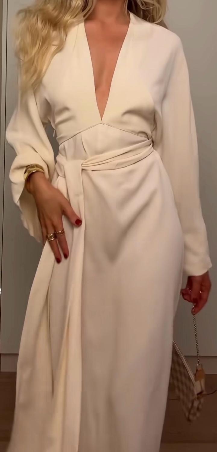 Шикарное платье от Zara, цвет НЕ БЕЛЫЙ, а экрю🤍 размер S, длина миди с V-образным вырезом 🤍 в объявлениях есть такое же платье в черном цвете 🖤 Артикул: 438834