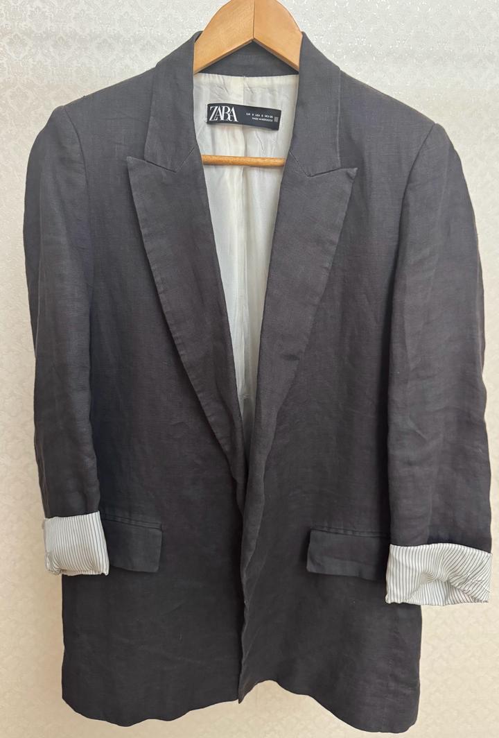 Льняной пиджак Zara, в цвете графит, размер S Артикул: 439060