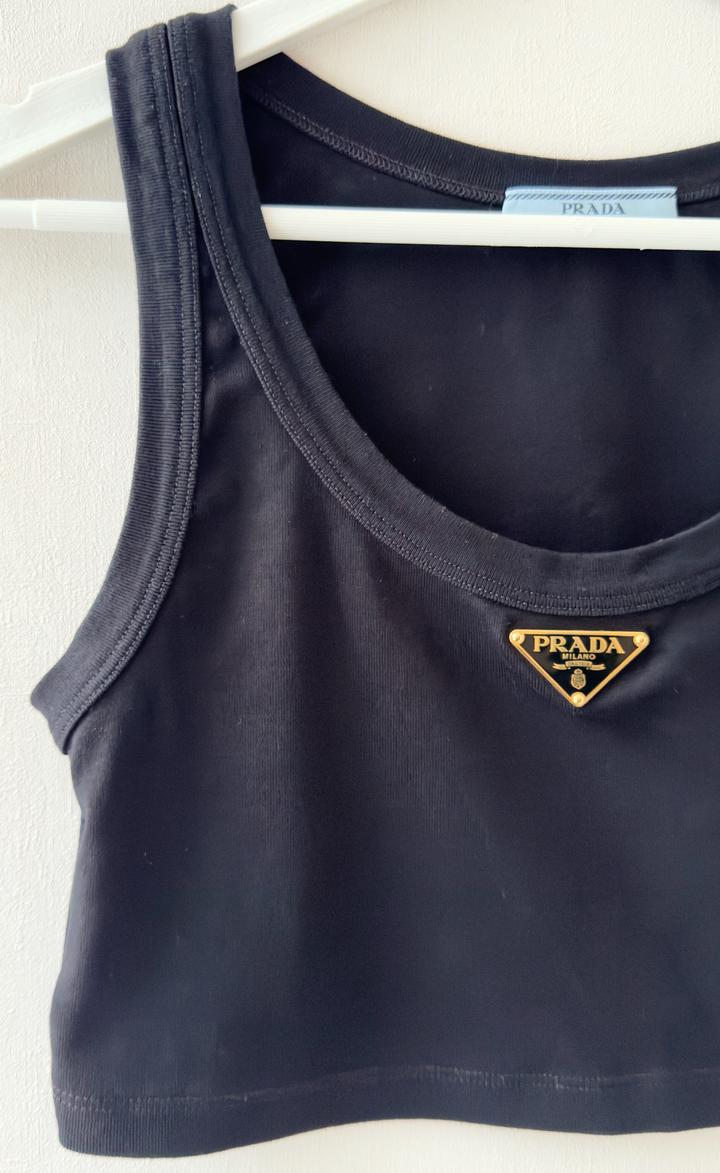 Оригинальная майка Prada с фирменным треугольным логотипом. Куплена в официальном бутике Prada (Турция, 2024). Размер 38 (XS-S) Состояние отличное, носилась аккуратно, без дефектов. Очень стильная и базовая вещь, продаю, так как не ношу. Артикул: 439071