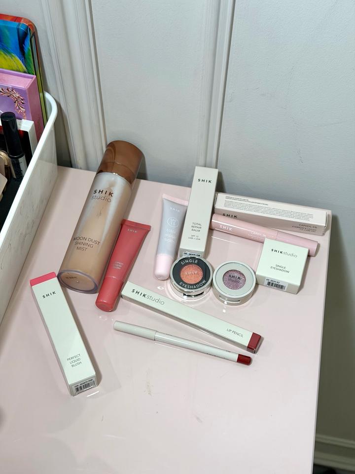 Прислали на обзор, почти половина у меня уже была, воспользовалась 1 раз для видео. В набор входит: мист для лица и тела с шиммером, бальзам для губ, гель для бровей, жидкие румяна, спарклы 2 штуки, карандаш для губ красный. Общая стоимость набора в золотом яблоке: 40000тг Артикул: 439237