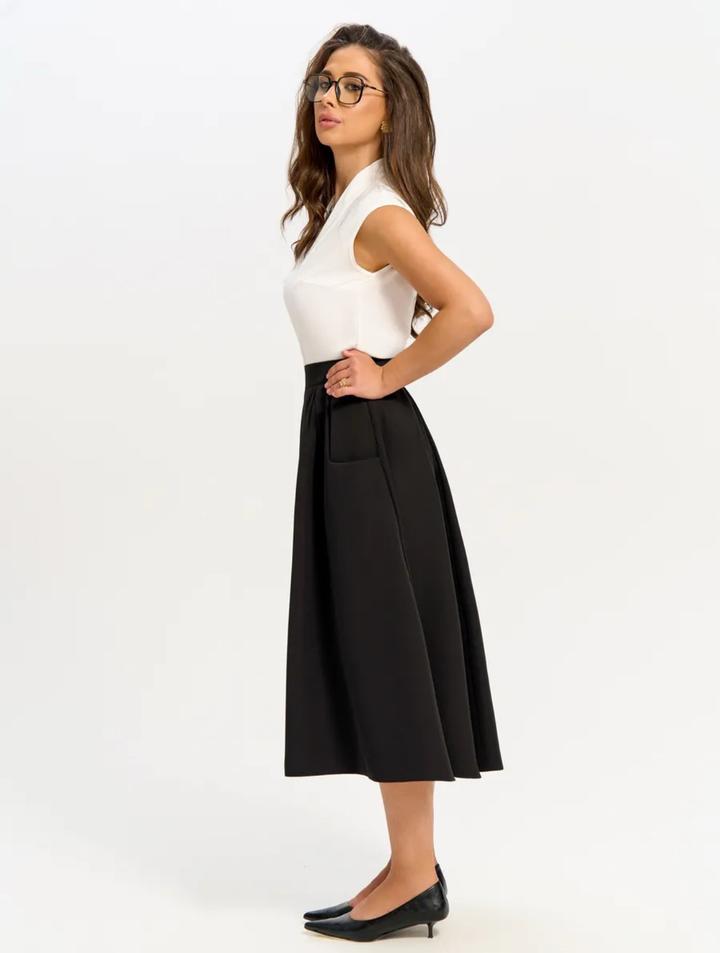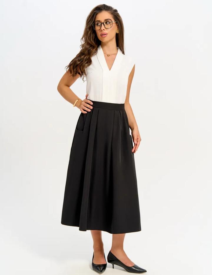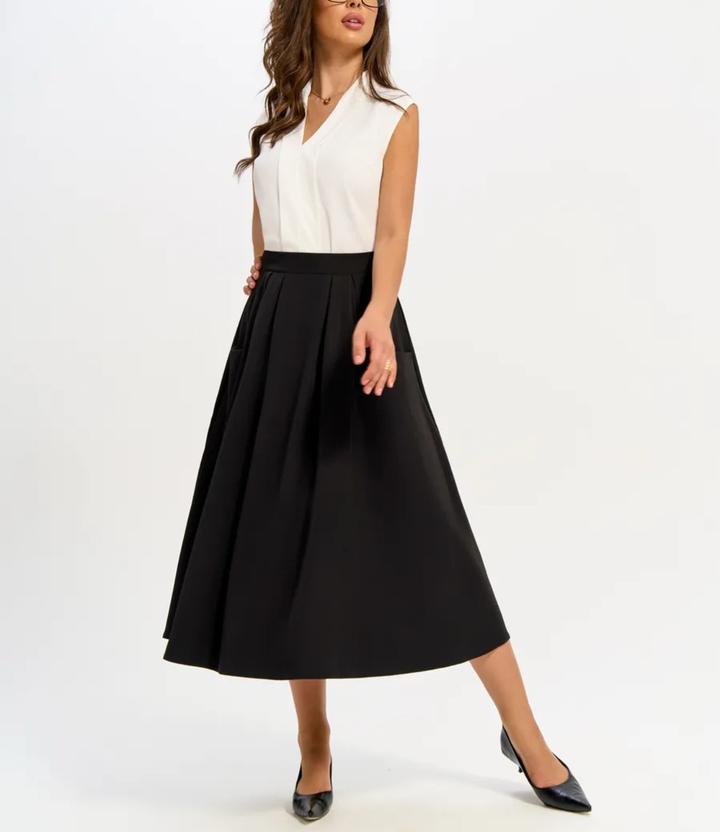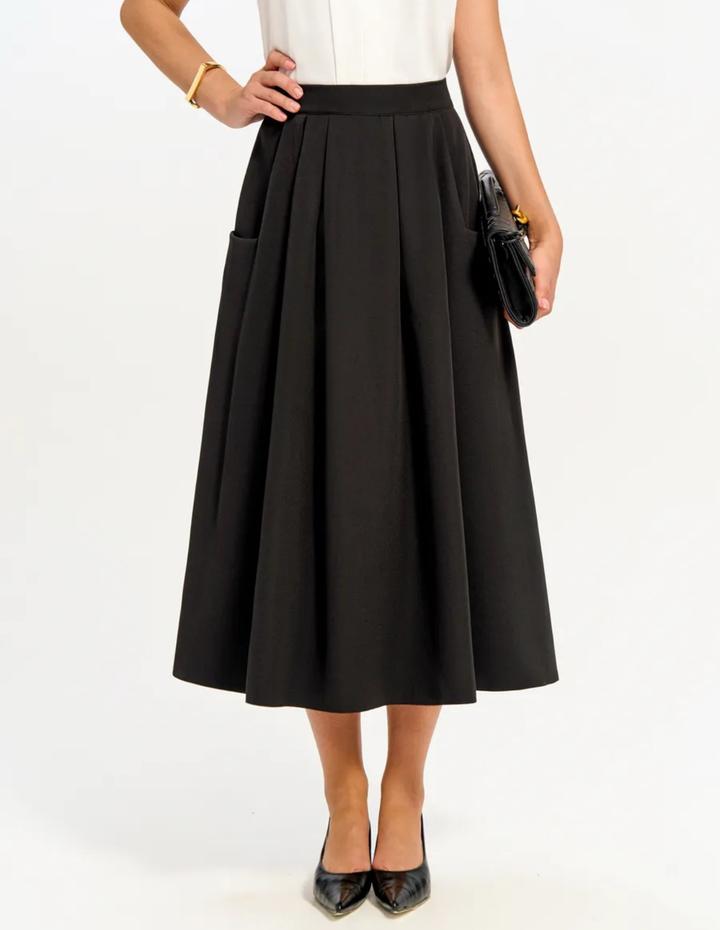 Черная юбка с карманами между миди-максиS