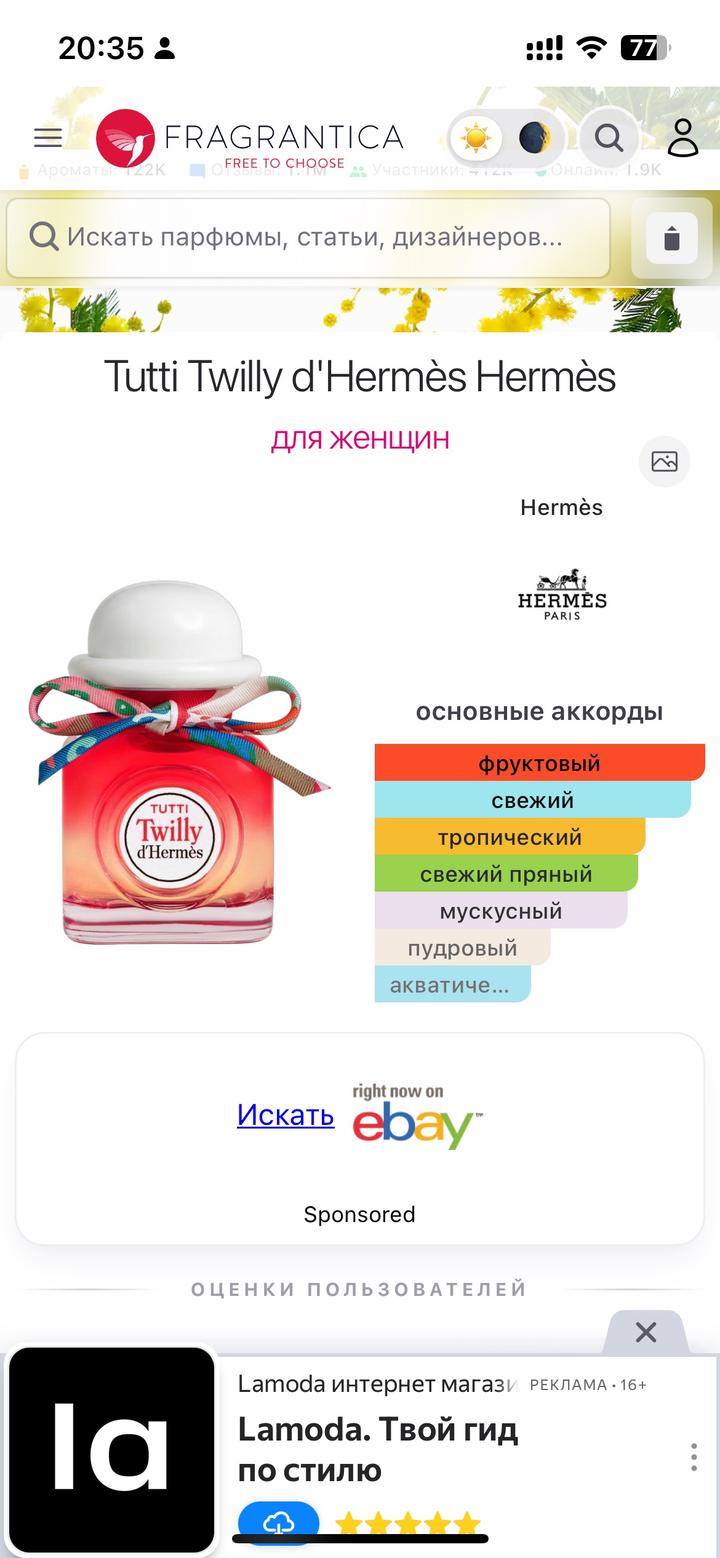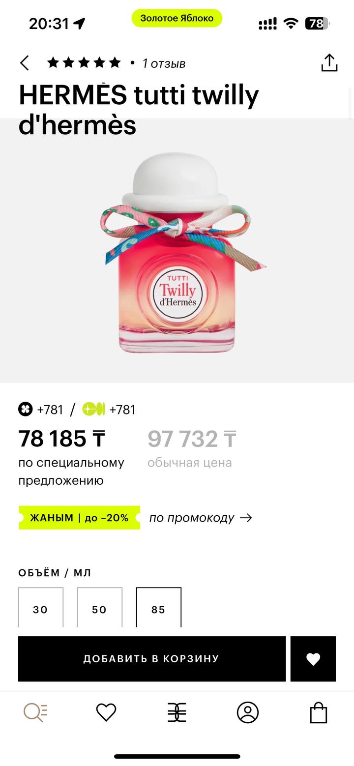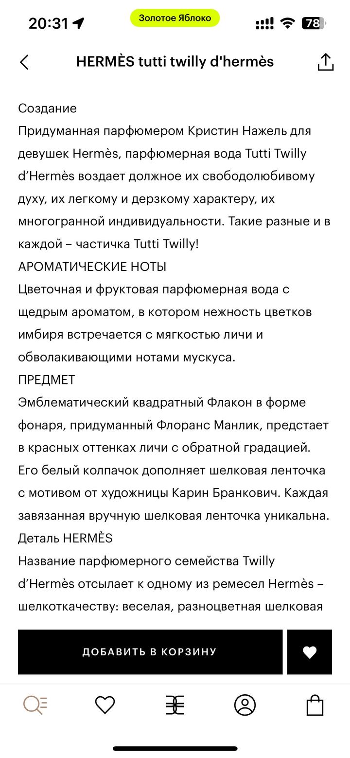 HERMÈS tutti twilly d'hermès Объём 85 мл не хватает 10 мл , в коробке Очень приятный аромат Больше интересных вещей у меня в профиле , заглядывай 💛 Приятных покупок 💛 Благодарю что уделили время и внимание моей страничке 💛 Артикул: 439559
