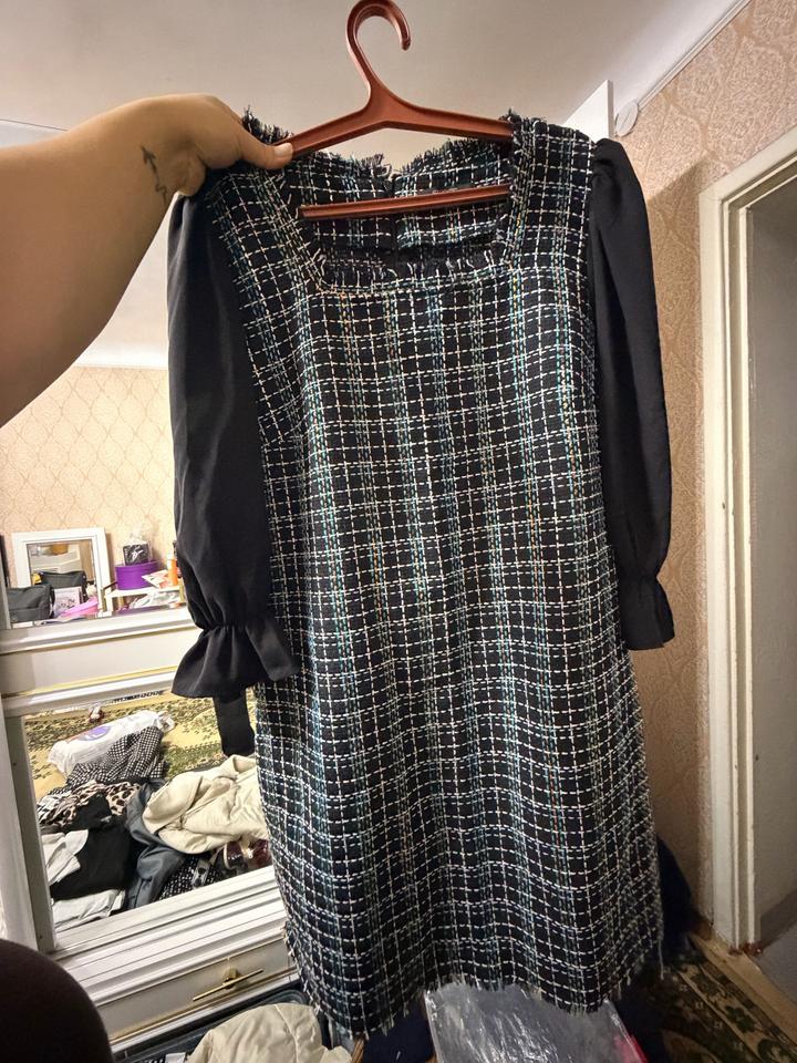Черное в клетку, необычное платье от бренда swass. Очень удобное, красивое платье размера XL. Артикул: 439781