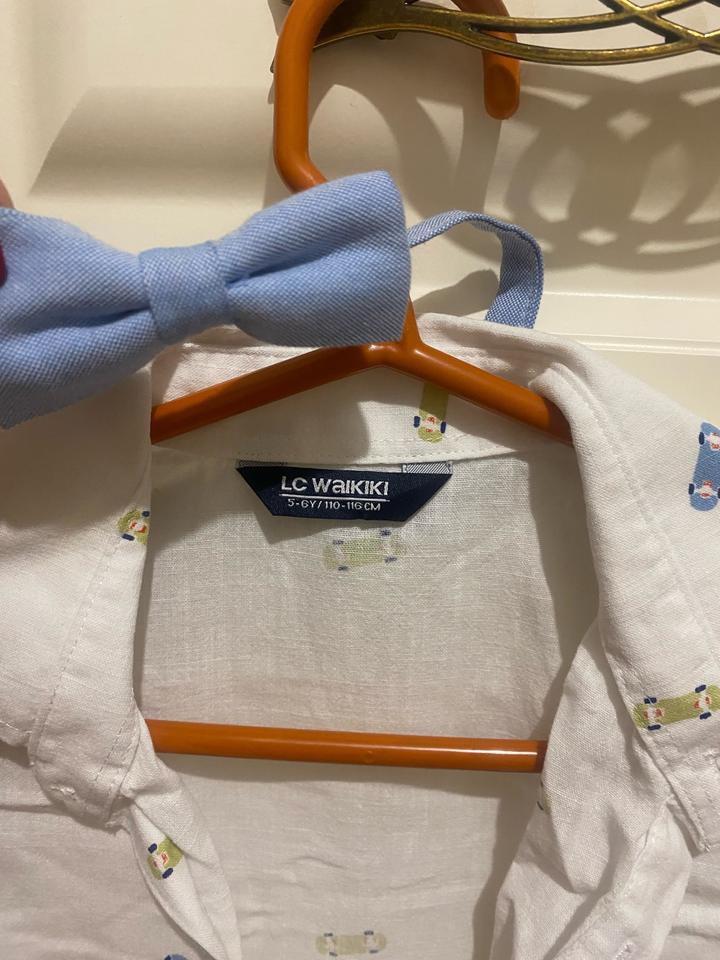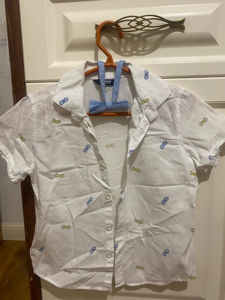 Рубашка на размер 110-116 один раз на праздник . В комплекте бабочка . Артикул: 439841