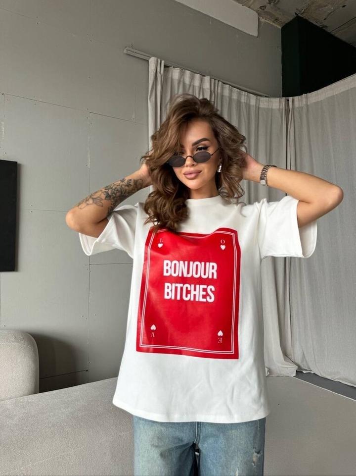 Bonjour bitches Удлиненная футболка Артикул: 439951