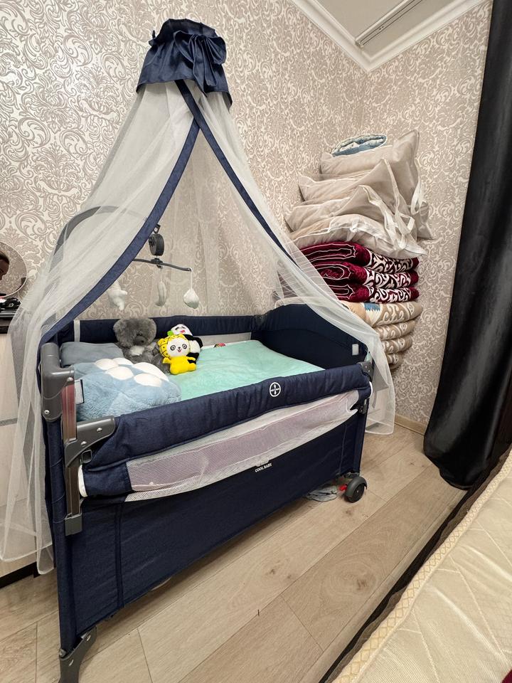 Детский манеж-кровать. Состояние новое, без дефектов. Ребенок не спал в ней, как приобрели так и стоит. В комплекте все имеется в целостности. Артикул: 442193