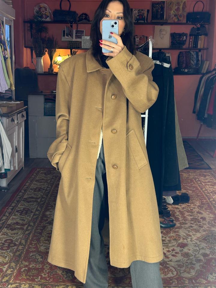 Винтажное мужское пальто 100% шерсть Размер 52-54 Цвет кофе с молоком Производство Финляндия 🇫🇮 Отверстия в подмышечной области не являются деффектом, так задумано производителем). Артикул: 442535