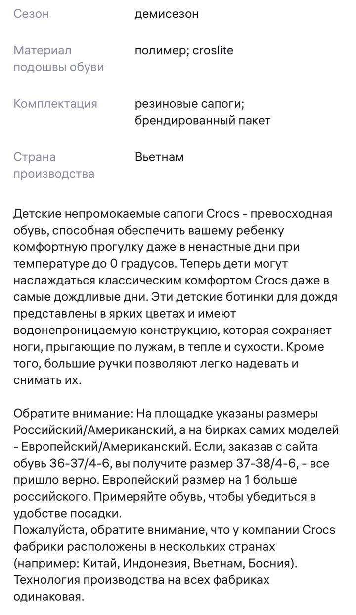 Условия возвратаМожно вернуть, если товар отличается от описания