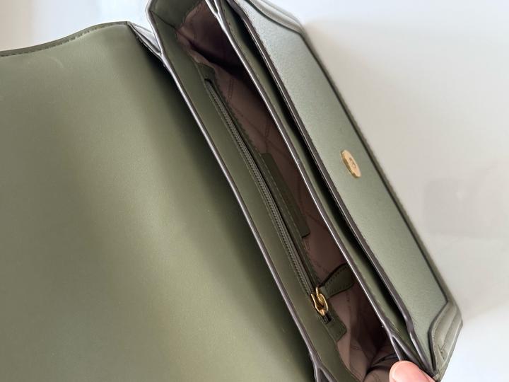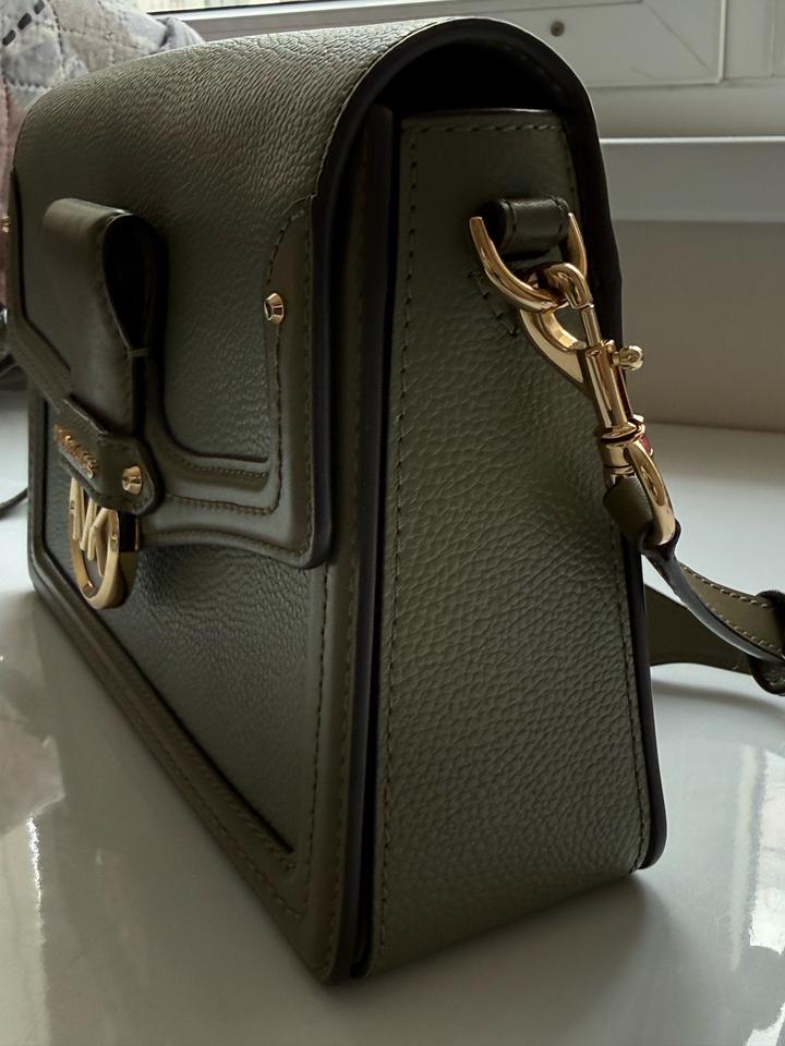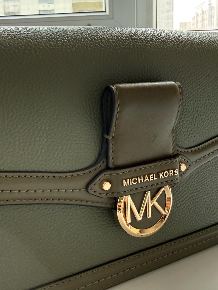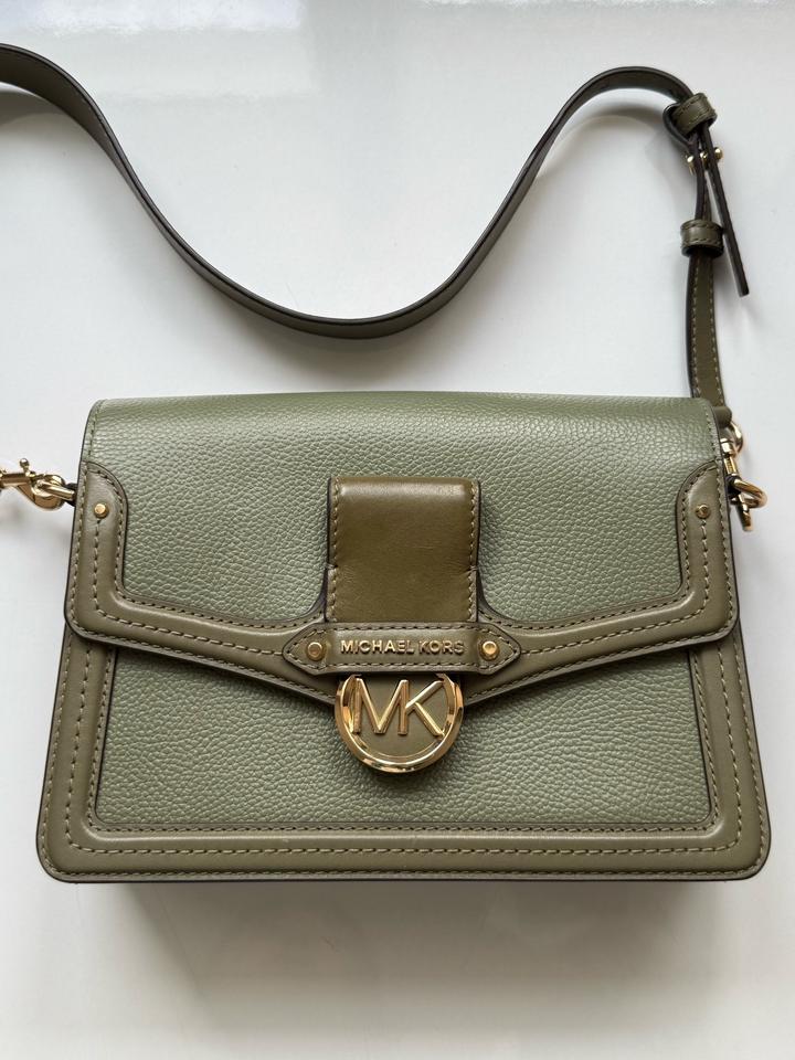 Зеленая сумка-кроссбоди Michael Kors Jessie выполнена из натуральной сафьяновой кожи. Ее ценят за устойчивость к влаге и царапинам. Фурнитура латунная — не теряет вид долгие годы. Цвет: хаки Размер:Средний Размеры:Длина 25 см; высота 18 см; ширина 6 см. Регулируемый плечевой ремешок 115см. Состояние отличное, есть один нюанс, маленькая царапина. Артикул: 442735