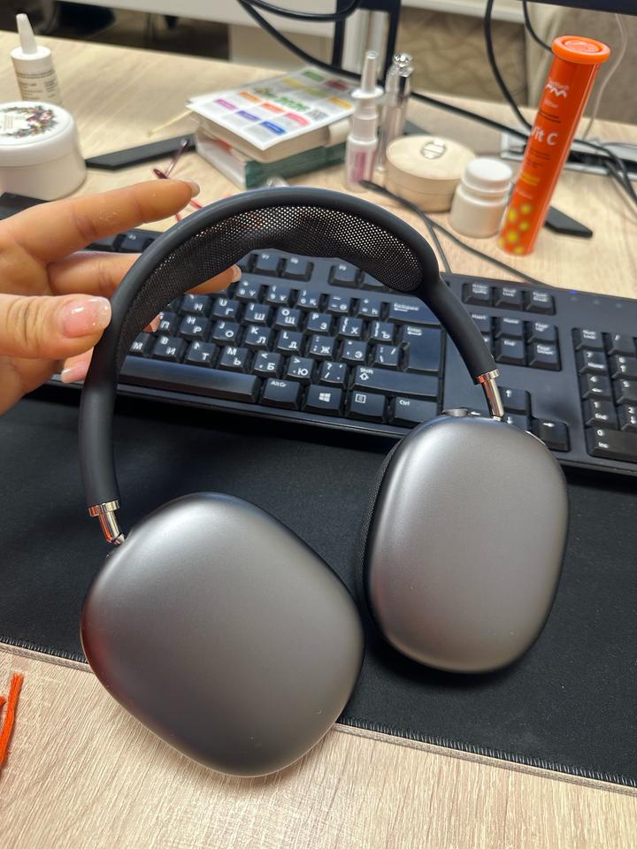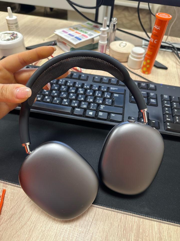 Air pods max, в комплекте коробка и чехлы. Зарядка лайтник, классный звук все прекрасно работает. Шумоподавление 👍 черный цвет классный тем что не маркий совсем) Артикул: 442844