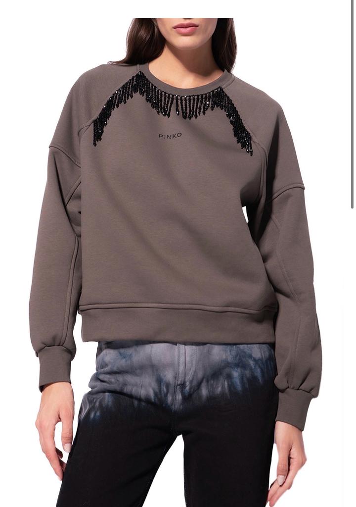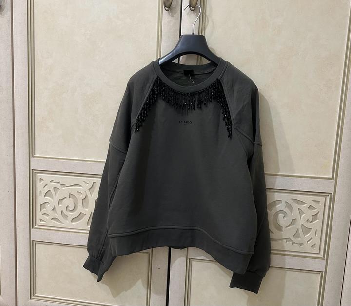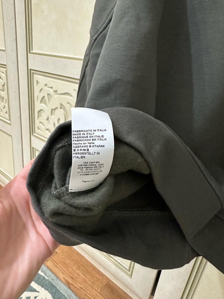 Состояние почти новое, выход 1 раз. Стильный свитшот оверсайз из коллекции бренда Pinko. Модель свободного кроя с округлым вырезом и длинными рукавами со спущенной линией плеча украшена декоративной бахромой в области выреза и плеч спереди. Фирменный логотип PINKO спереди и логотип Love Birds по центру на спинке завершают этот современный дизайн. Изделие выполнено из мягкого смесового хлопка с начесом. Состав: 65% хлопок, 35% полиэстер Страна дизайна: ИТАЛИЯ Страна производитель: ИТАЛИЯ Артикул: 442910