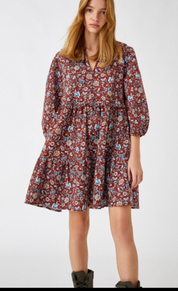 Тёплое платье OLE KOTON с цветочным принтом и воротничком 🌸 Стильное и уютное платье, отлично подойдёт на осень и весна. Плотная ткань, хорошо держит форму. Аккуратный воротничок придаёт нежный и аккуратный вид. Размер: хс,с,м Состояние: (надето 1 раз / отличное) Артикул: 443059