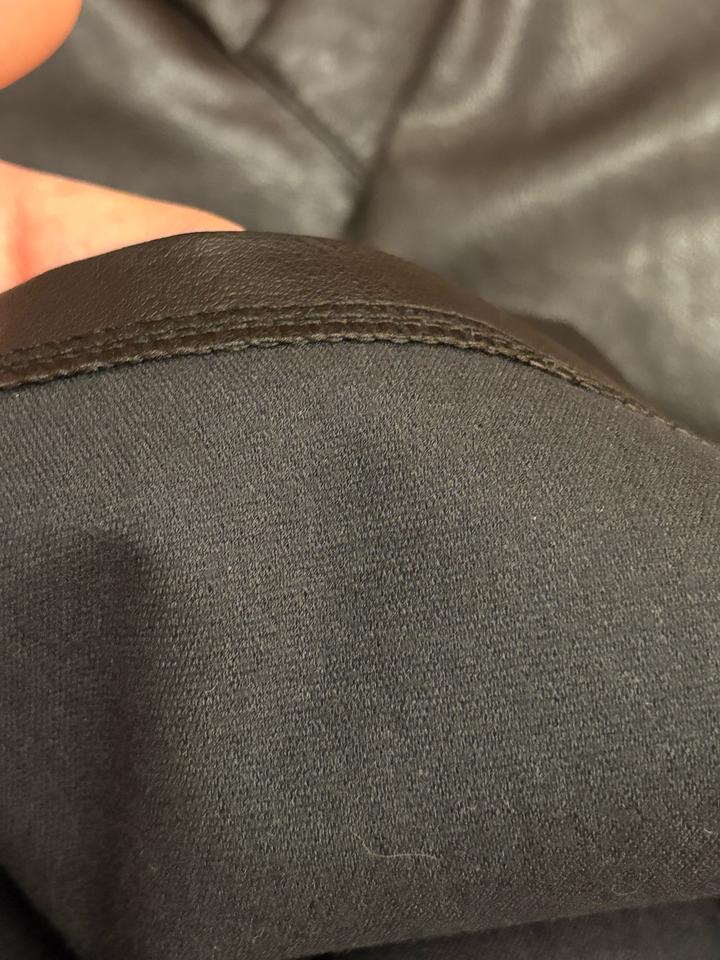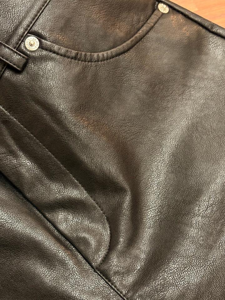 Кожаные штаны (кожзам) В идеальном состоянии. Без задних карманов. Материал смотрятся очень дорого (под кожу)с хлопковым подкладом идеальной посадки . Заломов , царапин следов носки нет Мне малы подойдет на размер 34/36 так же сделала замеры см на фото Длина от пояса 102 По поясу 37 Бедра 42 Артикул: 443184