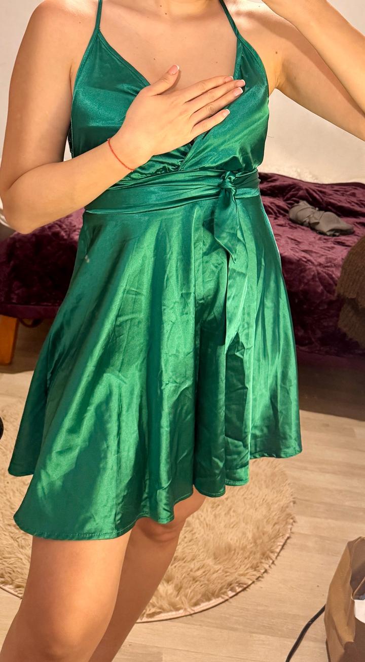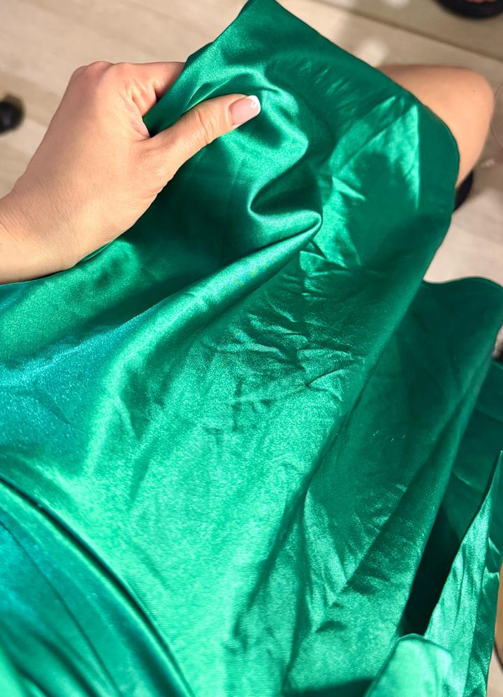 Недорого эффектное атласное платье богатого зеленого цвета в идеальном состоянииS/M