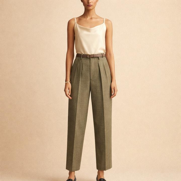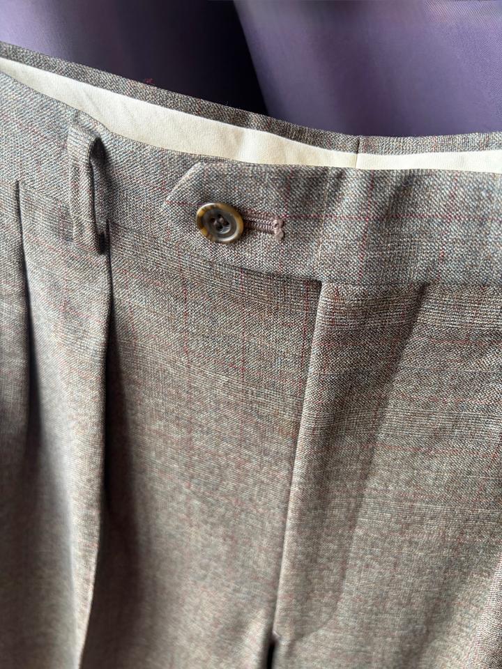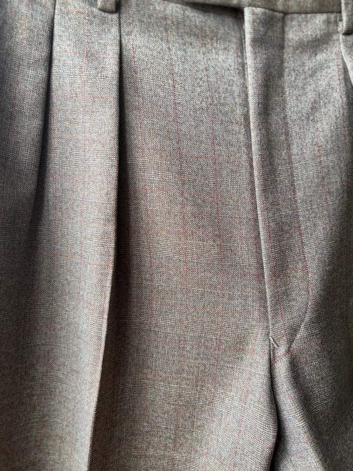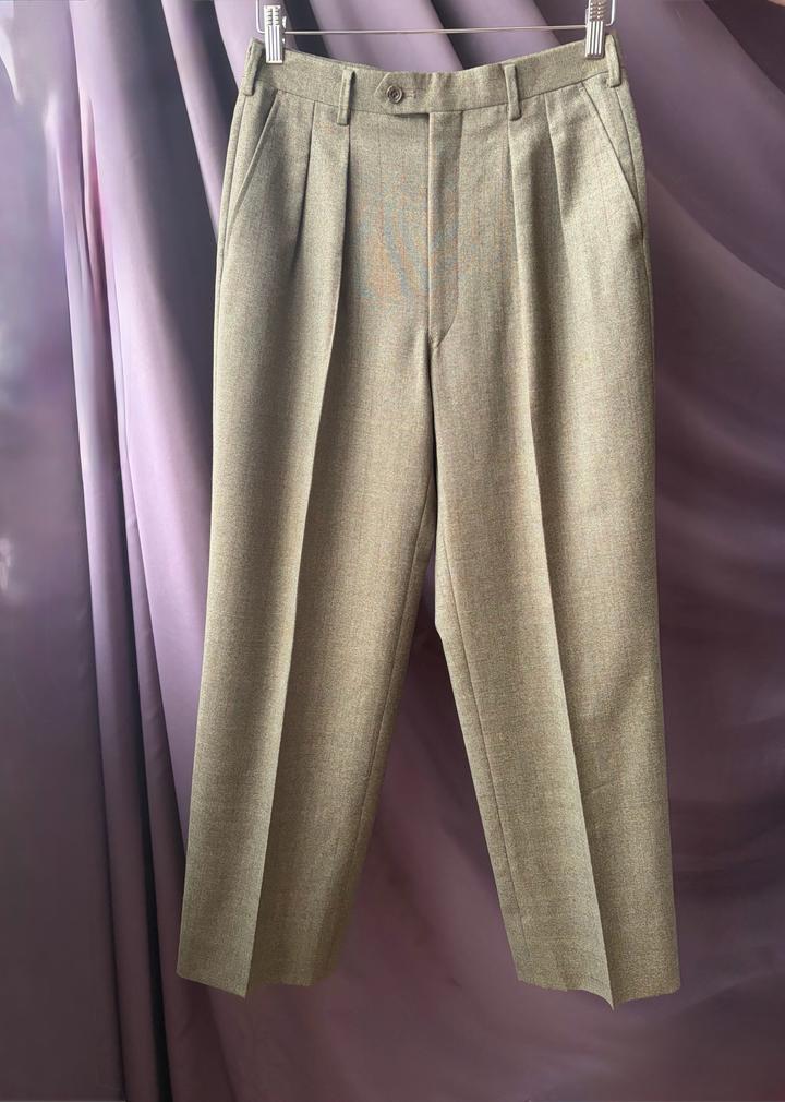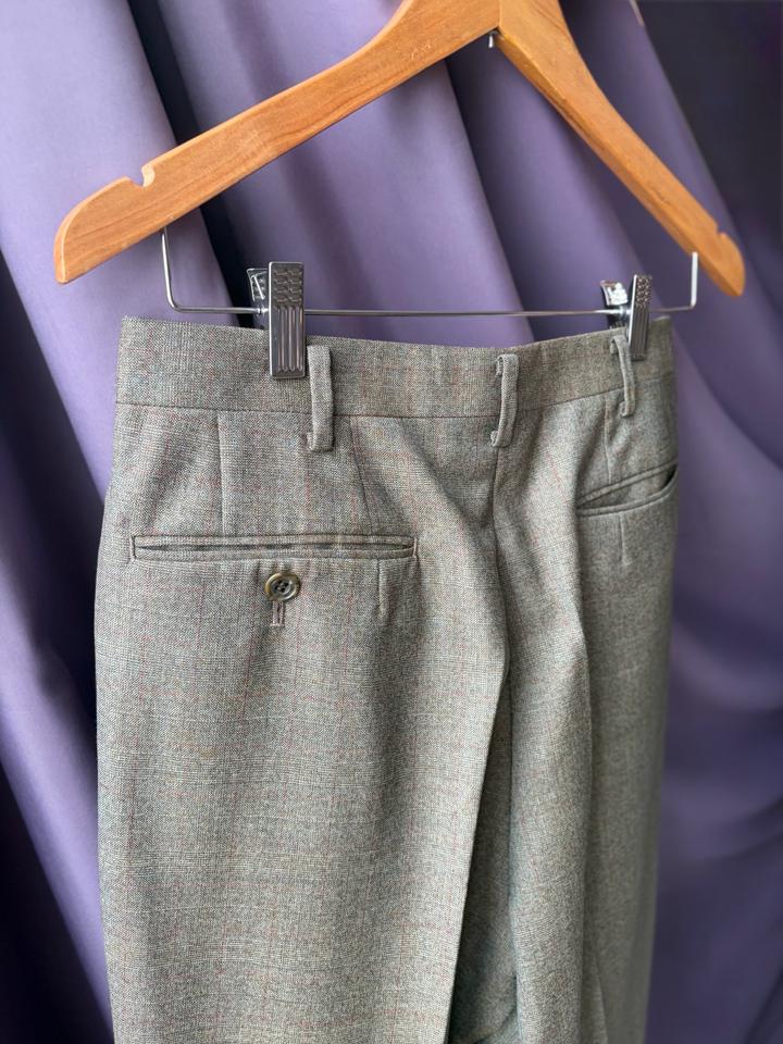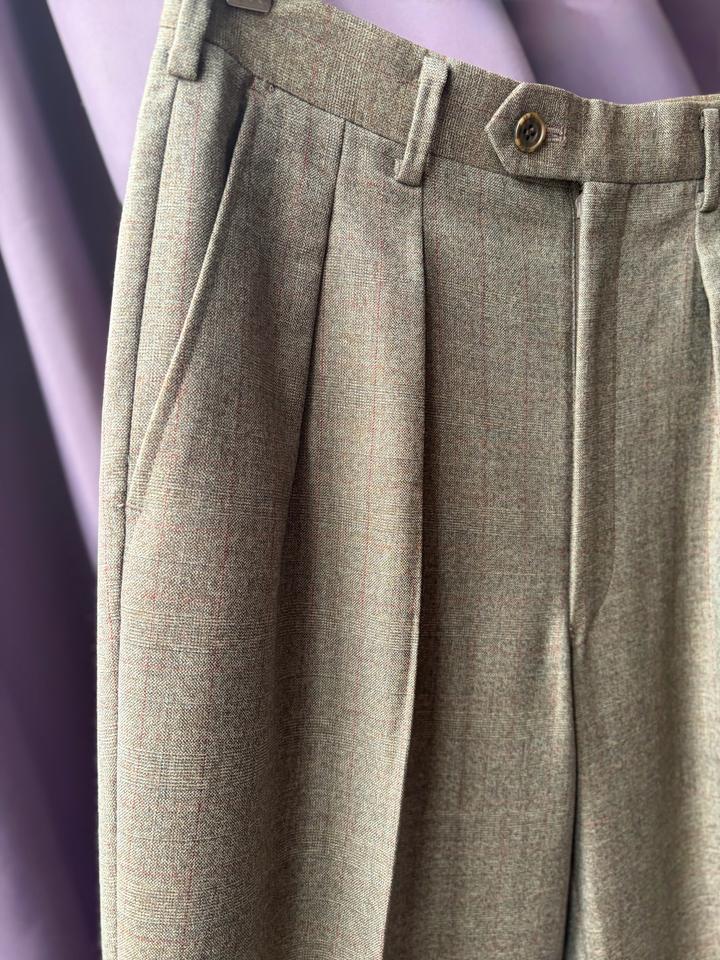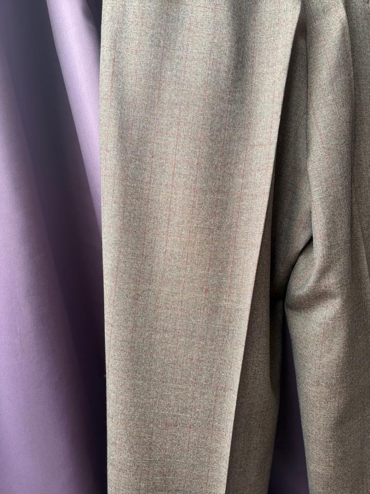 Кассические брюки серо-бежевого цвета, с малиновой и голубой ниткой в плетении. Мерки: Длина брюк 98см. Длина пояса 3+7### ### ## ##см) Артикул: 443917