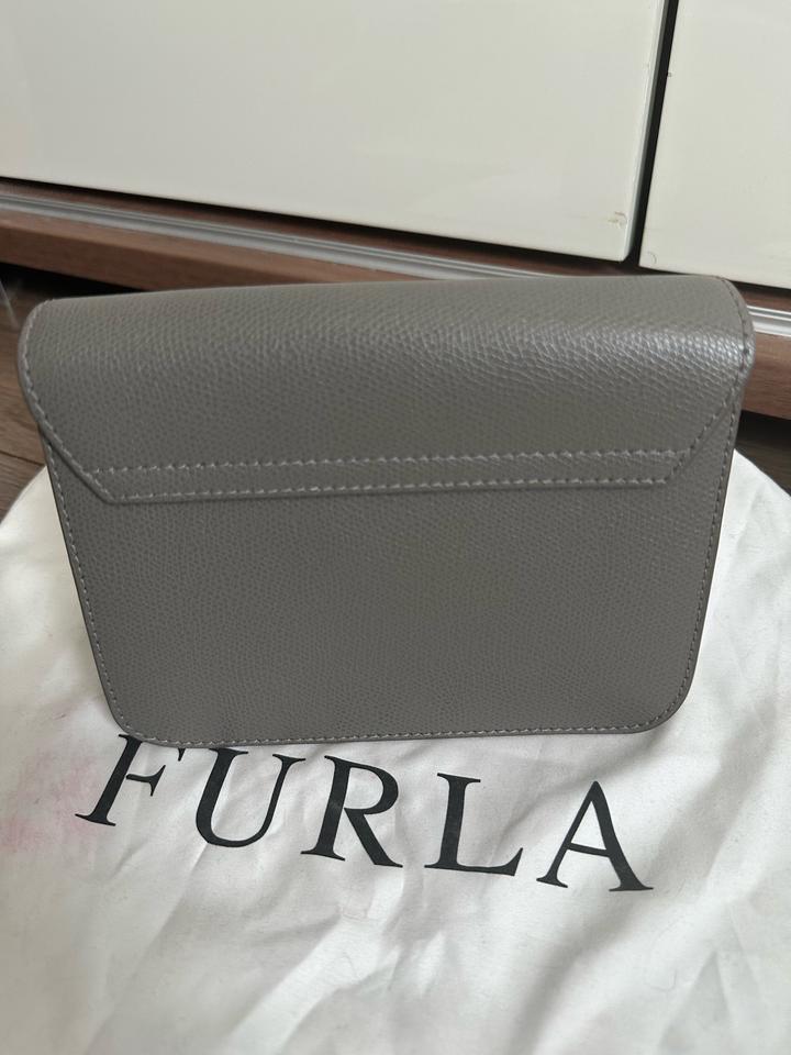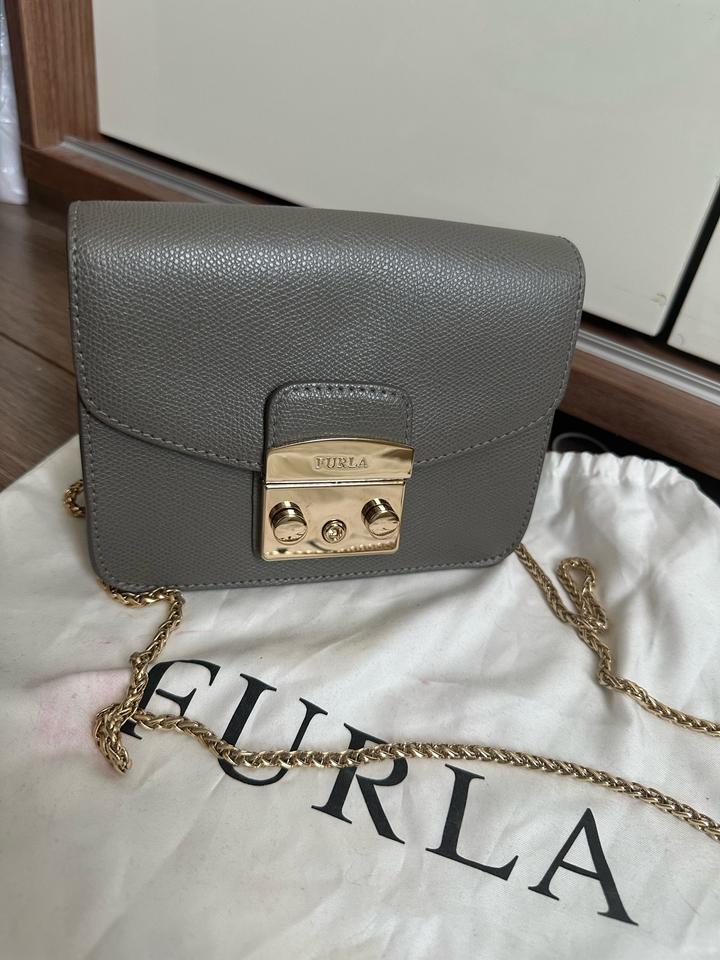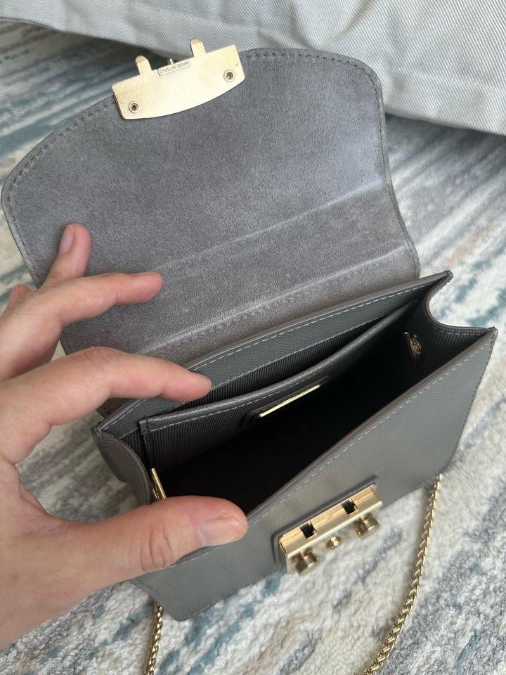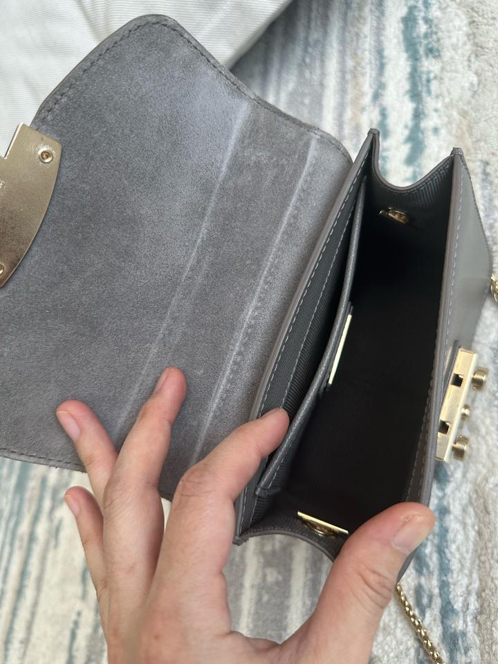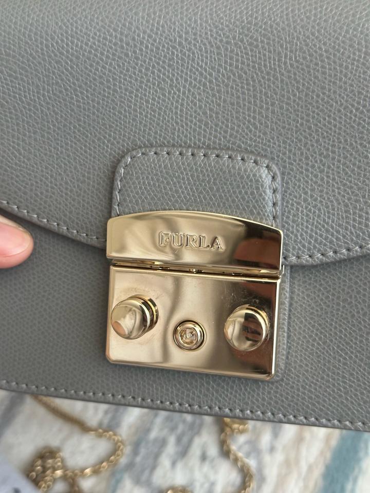 Небольшая сумка Furla, оригинал. В отличном состоянии. Светло серый цвет. На цепочке. Царапины отсутствуют, на золотистой застежке есть немного следы от открывания. Носила крайне редко (только на мероприятия). Размеры: ширина 16,5 см, высота 13 см, глубина 7,5 см Артикул: 443924