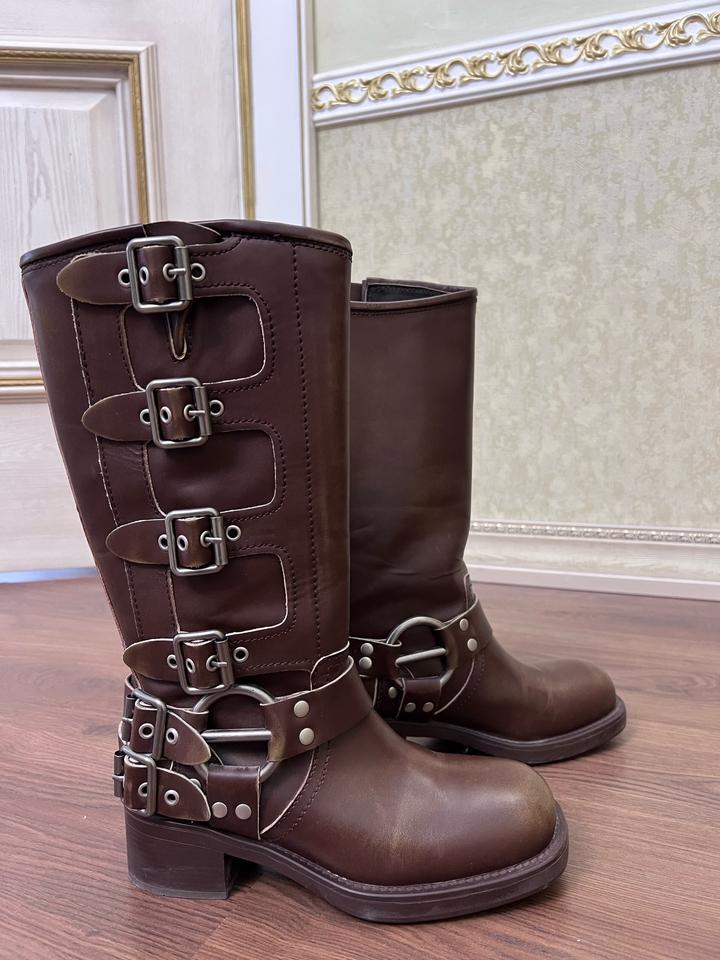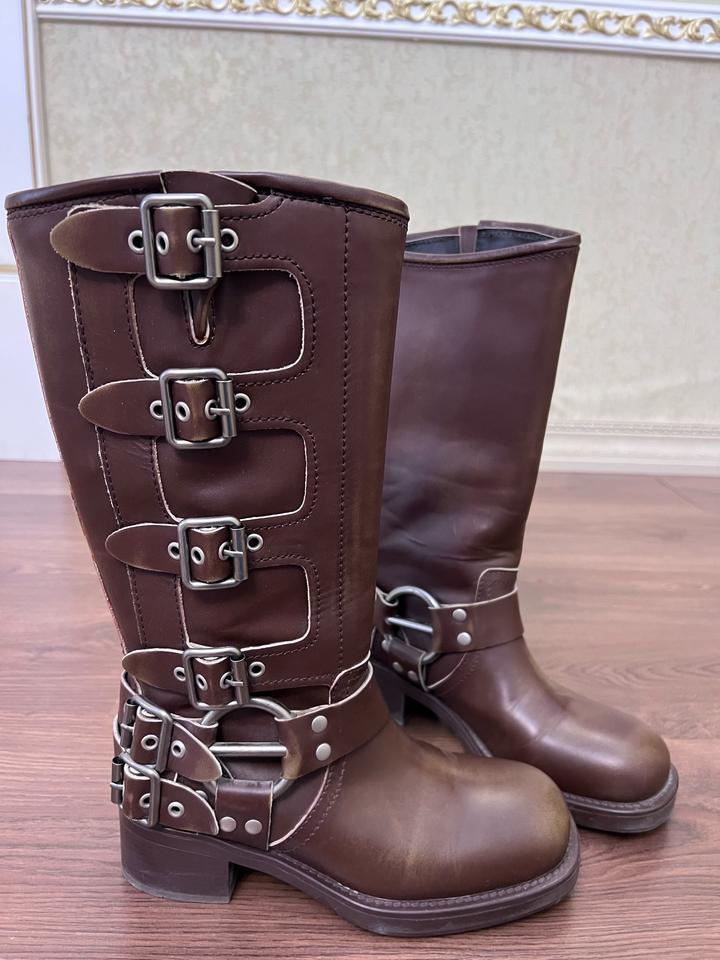 Стильные сапоги под Mui Mui Натуральная телячья кожа Новые Демисезонные Артикул: 444104