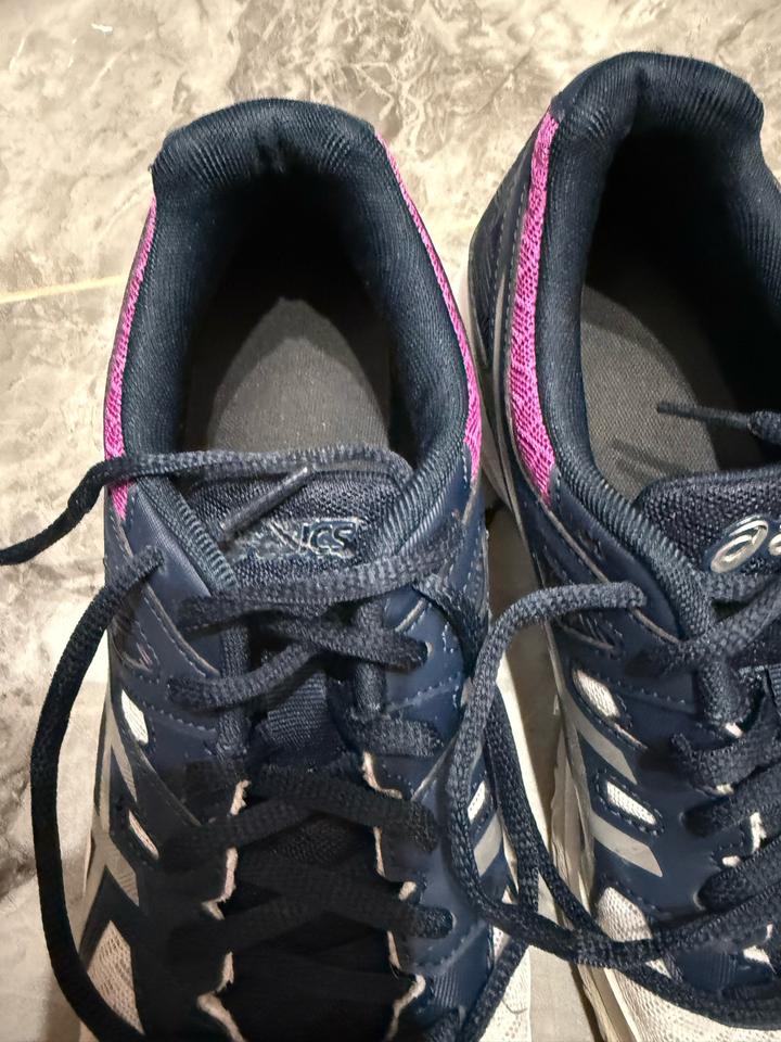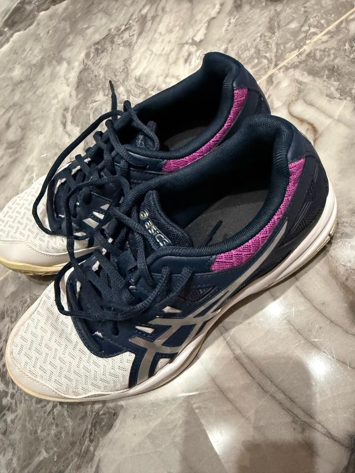 Оригинальные кроссовки Asics Размер 38–39 Очень удобные, отличная поддержка стопы Идеально подходят при плоскостопии и для тренировок, ортопедические Легкие, комфортные, нога фиксируется правильно Состояние хорошее, носились аккуратно Есть нюанс — с одной стороны на язычке отклеилась фирменная наклейка, на носку не влияет. Подошва почти без износа, сетка целая. Оригинал Артикул: 444376