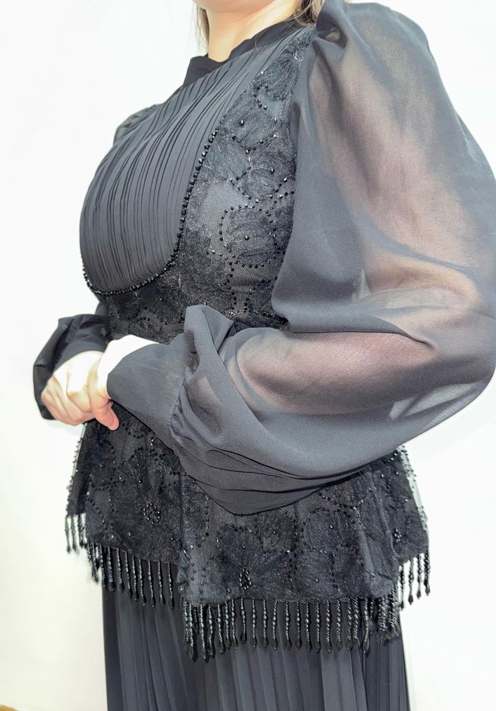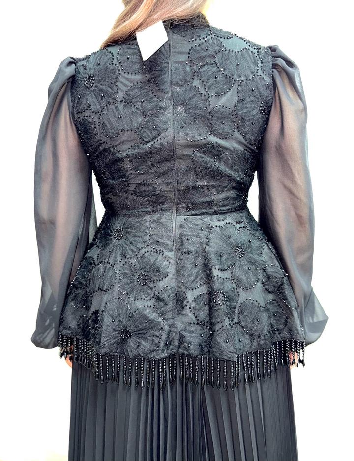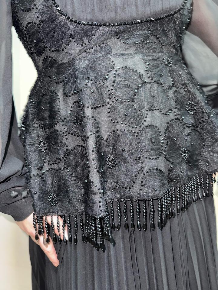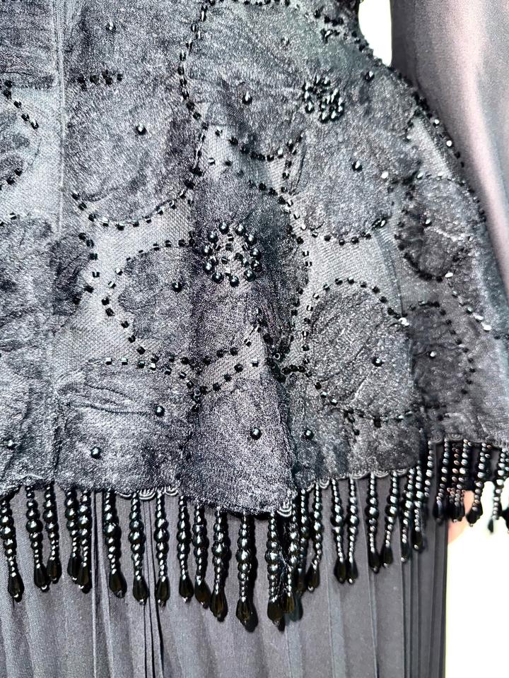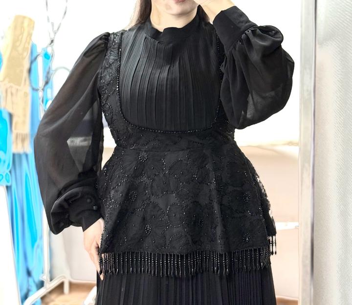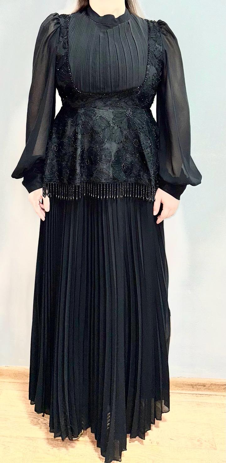 Чёрное платье Zimmermann Красивое чёрное платье от Zimmermann, очень элегантное и женственное. Смотрится дорого за счёт сочетания плиссировки, кружева и полупрозрачных рукавов. Хорошо подчёркивает талию, вытягивает силуэт, выглядит аккуратно и утончённо. Платье длинное, подойдёт для мероприятий, торжеств. Размер L, но немного маломерит, лучше ориентироваться на M–L. Состояние совершенно Новое, без дефектов. Идеальный вариант на холодное время года. 36 000 тенге. Артикул: 444526