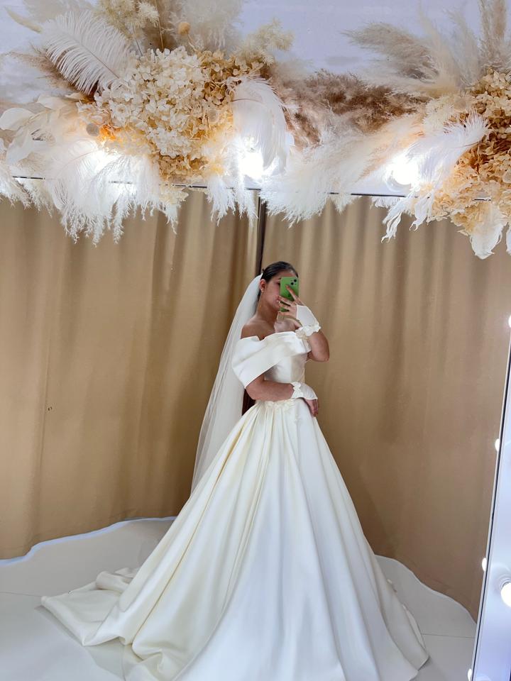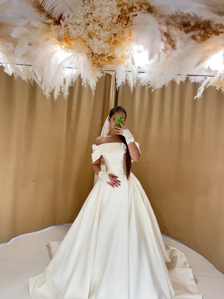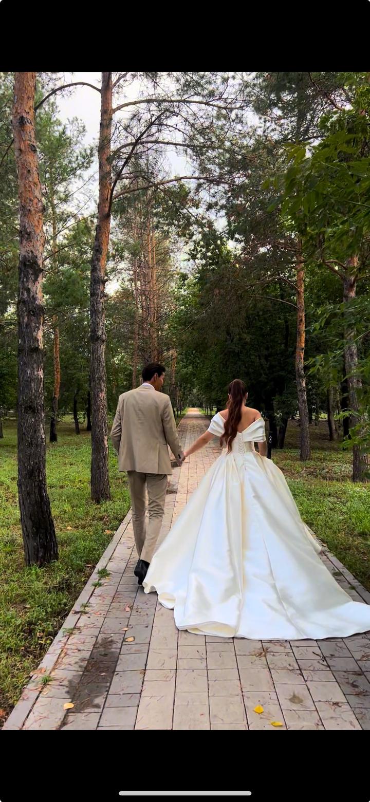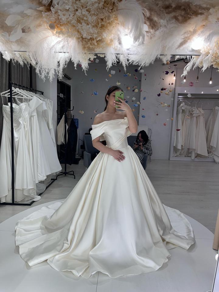 💫Нежное свадебное платье цвета айвори с корсетной шнуровкой и длинным шлейфом, создающим эффект королевского выхода. Модель с открытыми плечами подчёркивает женственность и элегантность силуэта. Платье надевалось только один раз — на саму свадьбу 💍 После торжества прошло деликатную химчистку, ткань в идеальном состоянии. Смотрится изысканно, утончённо и дорого — идеально для тех, кто мечтает о классическом, но современном образе невесты. 🎁 В подарок:дизайнерские перчатки и кольцо-подъюбник Артикул: 444573