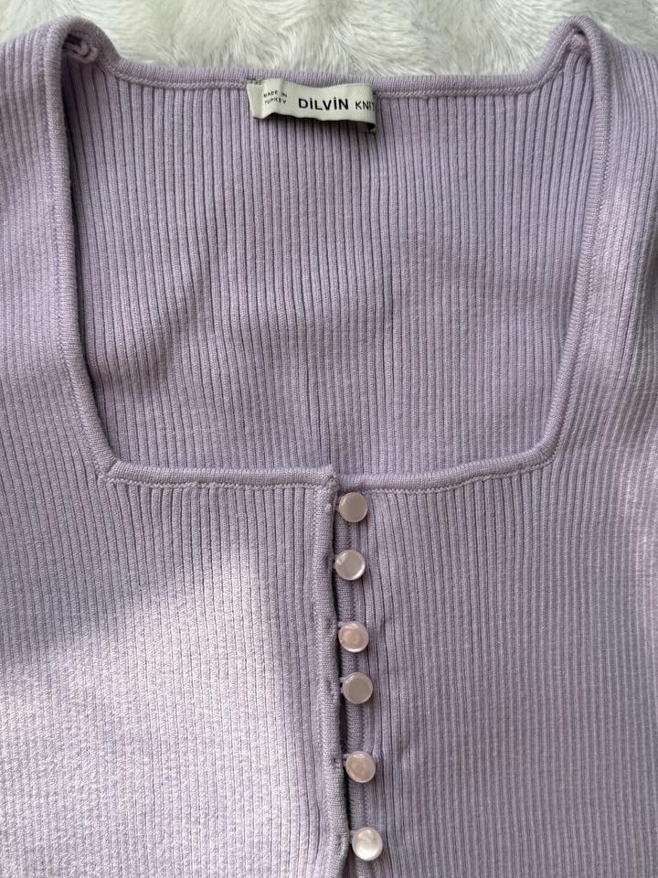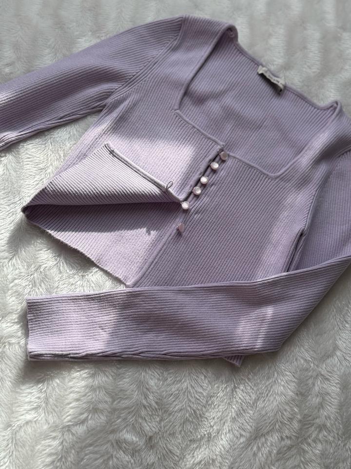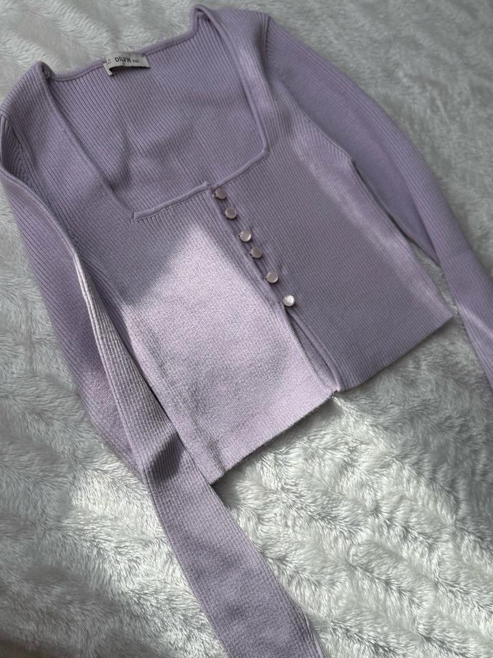 женский кардиган или топ в рубчик лавандового цвета с квадратным вырезом и милыми пуговицами, купила только из за цвета но так и не носила, размер 42-44, турция , dilvin Артикул: 444620