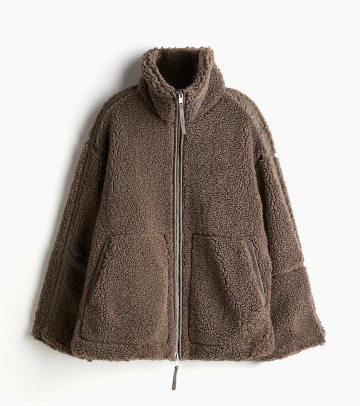 Куртка из флиса тедди H&M с кожаной отделкойXS