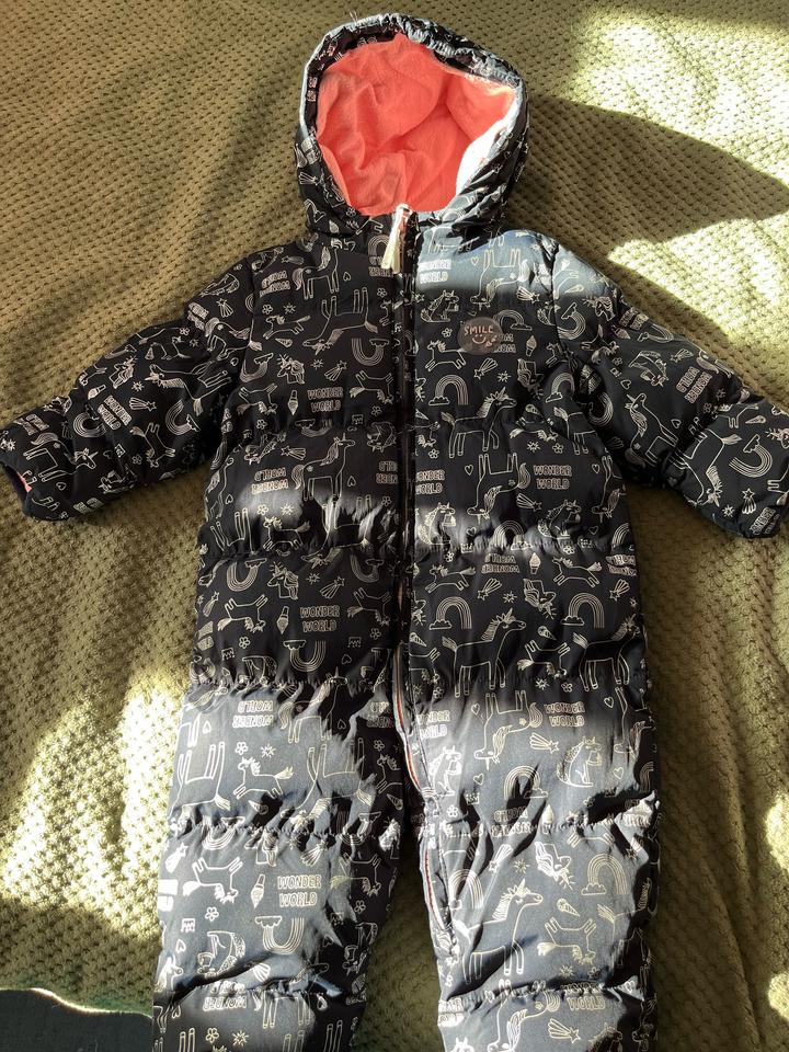 комбез трансформер, черный с серибристым рисунком, утепленный, на зиму самое то до 1,5 года подходит, Артикул: 445307