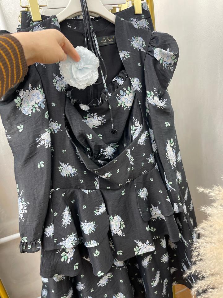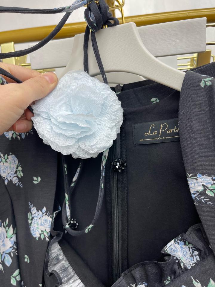 Тёмно-графитовое платье с нежными голубыми розами. Блузка с баской. Сзади — изящная шнуровка, благодаря которой вы можете отрегулировать посадку именно под себя + стильный чокер: носите его на шее или повяжите на руку — для модного и необычного образа. Юбка в длине макси А силуэт. Lux -эксклюзив. по оптовым ценам Турция. Размер 42, 46, 48 Продаю в связи закрытием магазина Артикул: 445341