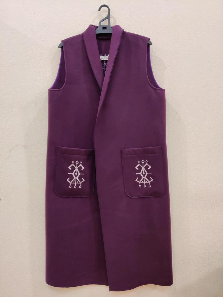 Жилетка NIYET DRESS в национальном стиле. К жилетке прилагается пояс. Красивый фиолетовый цвет, мягкая ткань, вышивка. Надевалась один раз, состояние отличное. На третьем фото пример на модели. Артикул: 445611