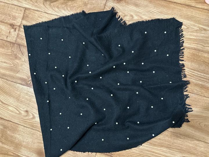 Шарф-палантин с жемчужными акцентами 🤍 Глубокий чёрный цвет и аккуратная россыпь жемчужных бусин делают его эффектным, но универсальным аксессуаром. Мягкий, уютный, красиво драпируется. Можно носить как палантин на плечах или объёмно повязать на шею. Идеально дополнит пальто, жакет или вечерний образ. Артикул: 446139