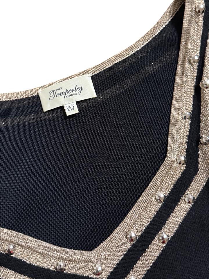 Temperley London - престижный британский бренд одежды класса люкс. Бренд пользуется огромной популярностью среди знаменитостей и членов королевских семей. Состав - шелк и кашемир, золотая декоративная вставка, размер UK10, платье короткое в идеальном состоянии. Артикул: 446170