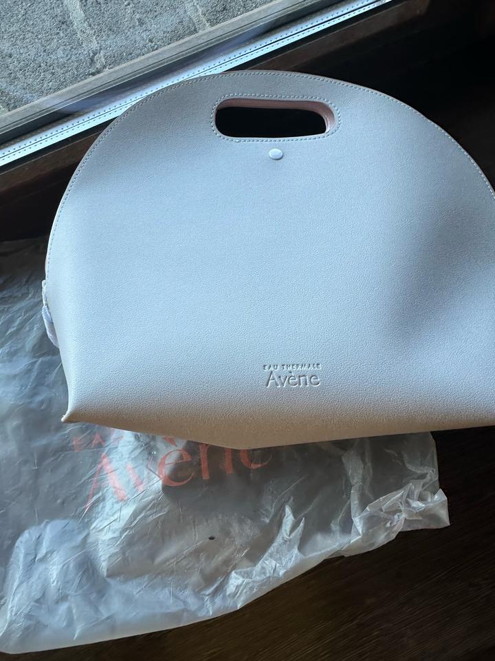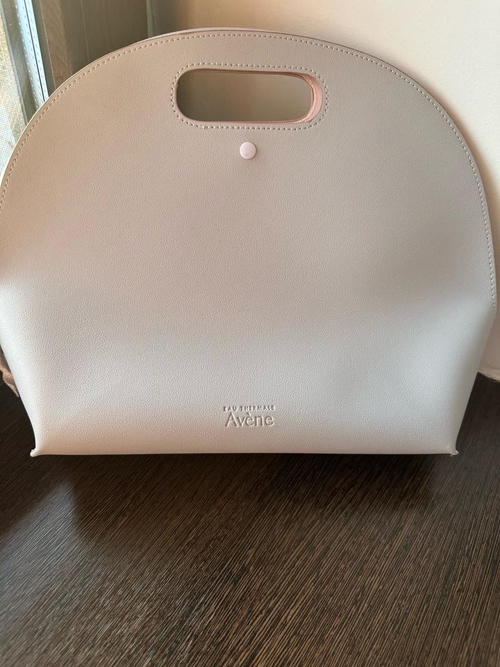 Новая молочная косметичка/сумочка Avene в упоковке. Очень милая, размер примерно 30 на 40. Достаточно вместительная, внутри на кнопке и закрывается на замок. Можно носить как сумочку;) Артикул: 446484